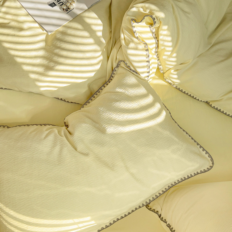 商品名称:卡普二店 2025新款A类轻奢贝壳绣丝柔缎提花枕套 丝柔缎-浅黄