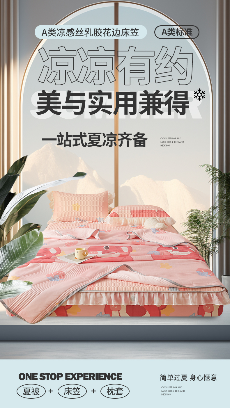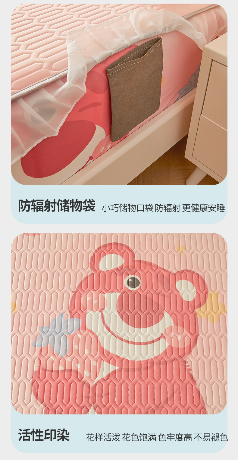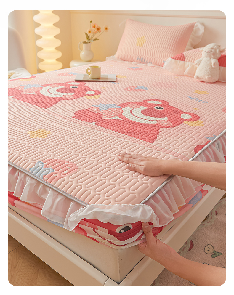 • 91家纺网 家纺一手货源 找家纺 伊人坊 2025新款A类凉感丝乳胶床笠凉席三件套-花边款 花边-草莓熊
