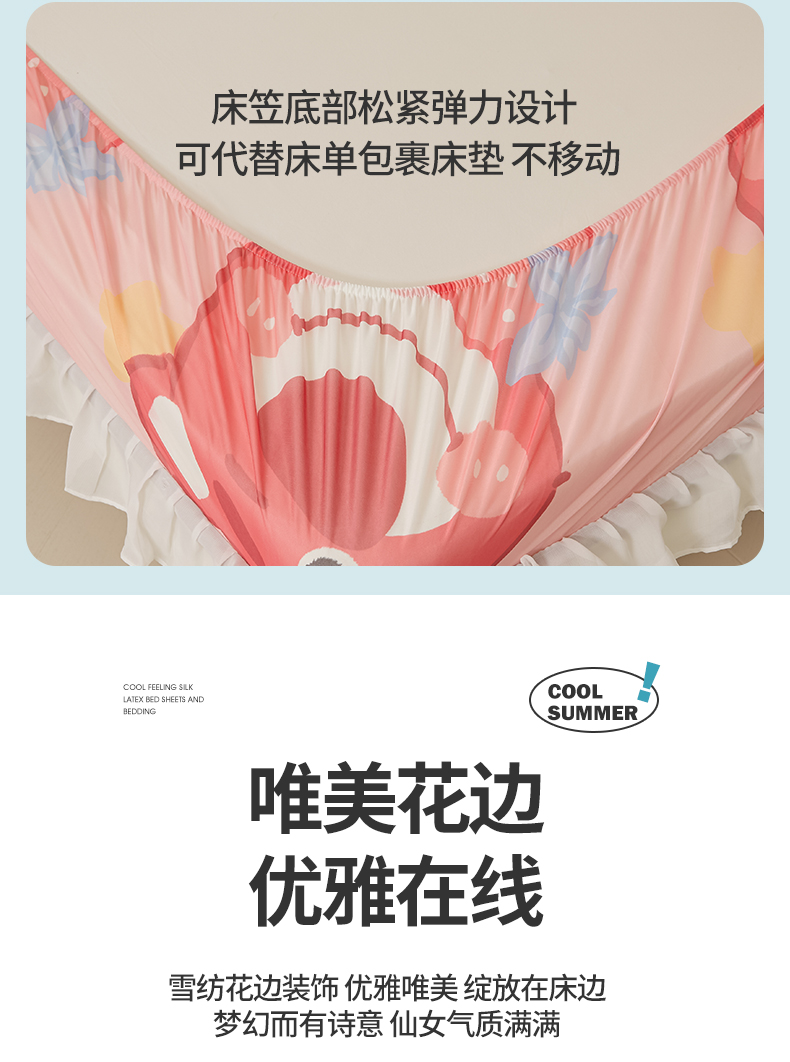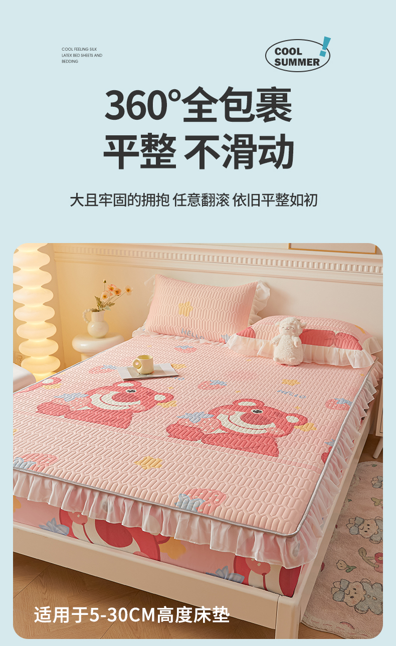 伊人坊 2025新款A类凉感丝乳胶床笠凉席三件套-花边款 花边-草莓熊