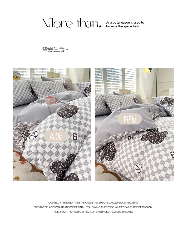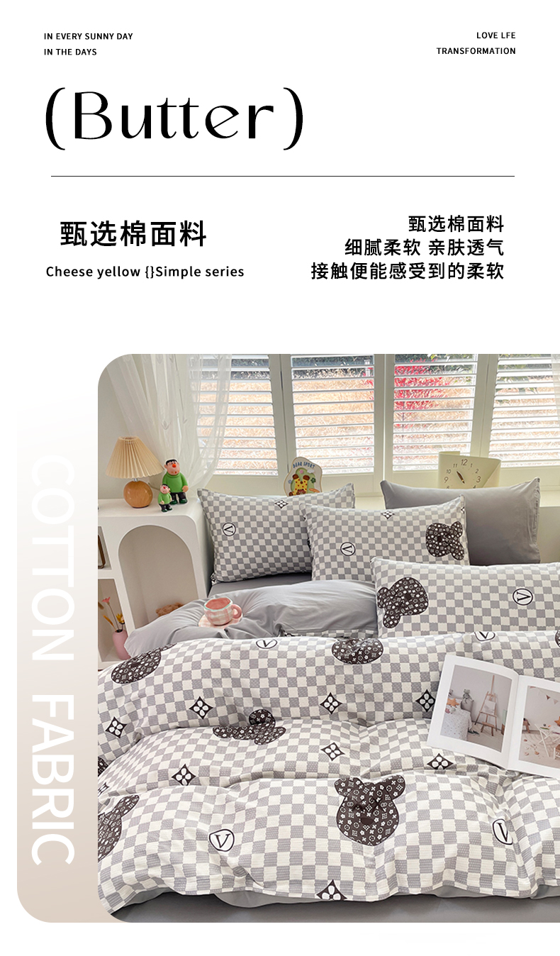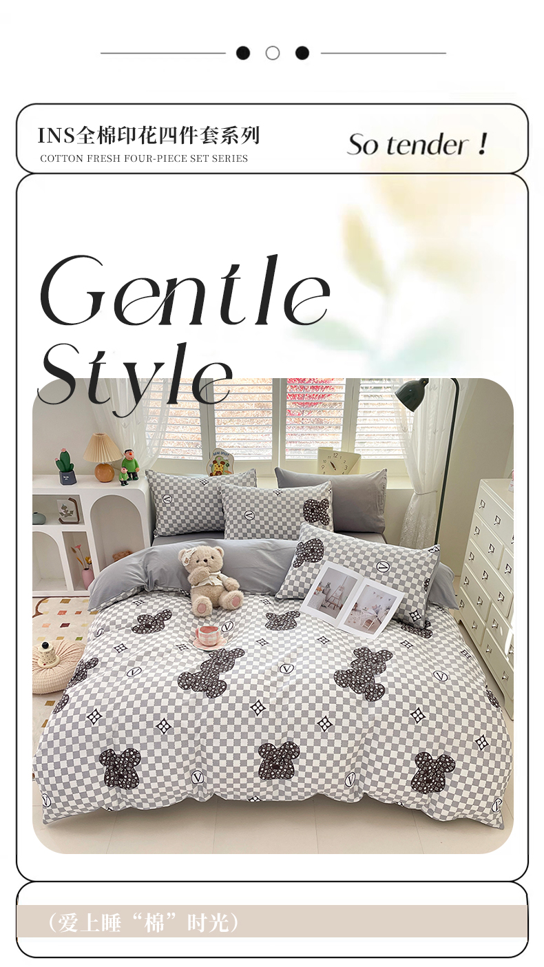 当前位置: 91家纺网 > 商品网购 > 床品套件 > 四件套 > 全棉普通四件套 > 宜家坊 2025热款全棉四件套学生床三件套单品床单床笠单被套印花小清新卡通碎花纯棉三四件套 巴比熊