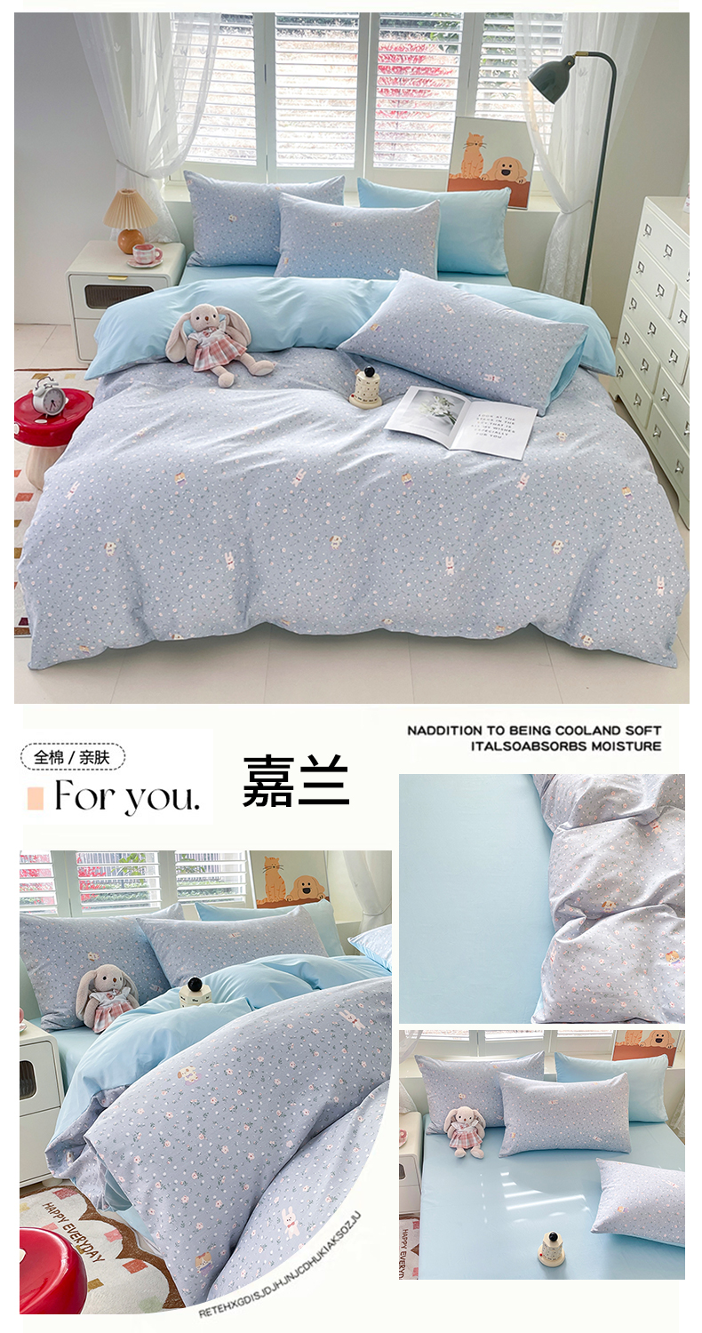 当前位置: 91家纺网 > 商品网购 > 床品套件 > 四件套 > 全棉普通四件套 > 宜家坊 2025热款全棉四件套学生床三件套单品床单床笠单被套印花小清新卡通碎花纯棉三四件套 嘉兰