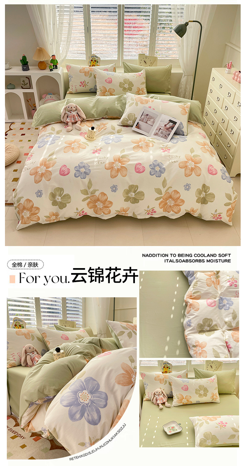 当前位置: 91家纺网 > 商品网购 > 床品套件 > 四件套 > 全棉普通四件套 > 宜家坊 2025热款全棉四件套学生床三件套单品床单床笠单被套印花小清新卡通碎花纯棉三四件套 云锦花卉