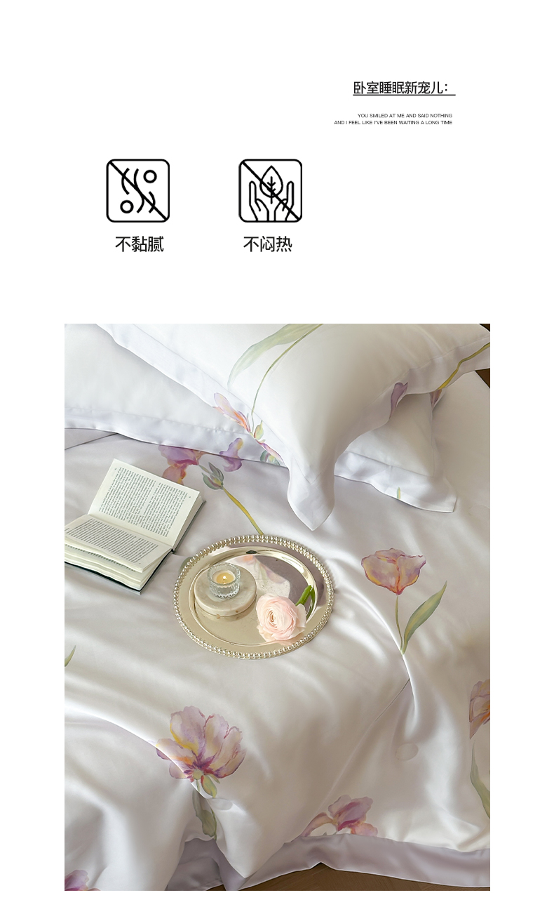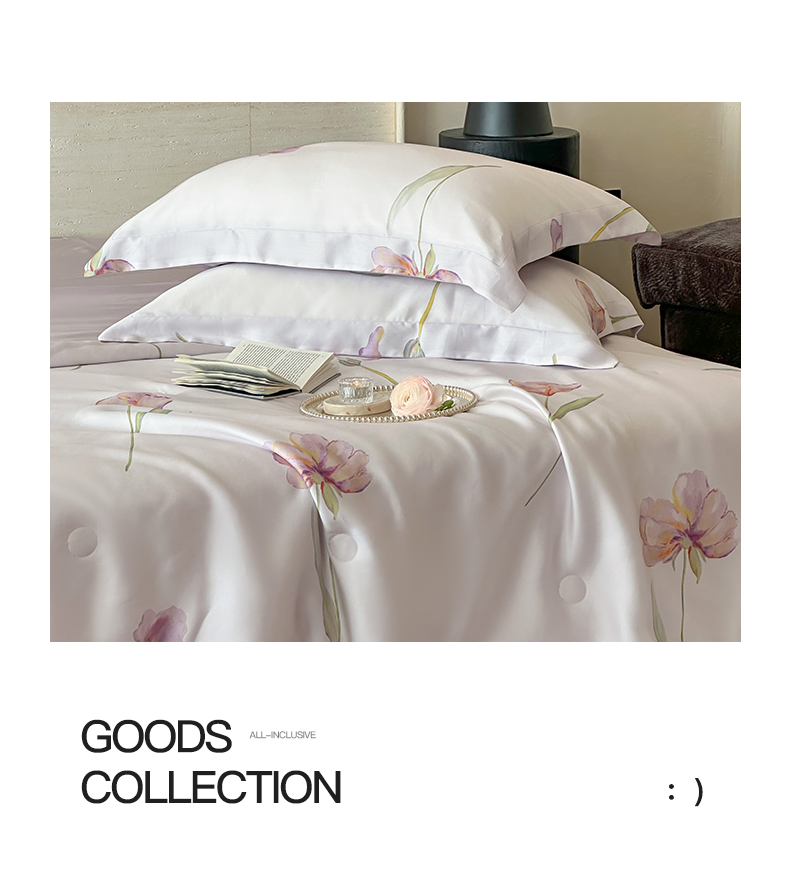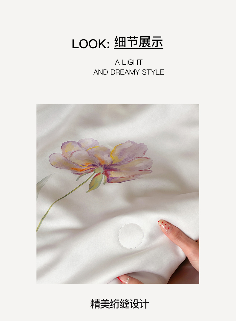 (总)佳汐蓝家纺 2025 春夏新品60支兰精天丝数码印花四件套-小苍兰花语,白,粉,蓝