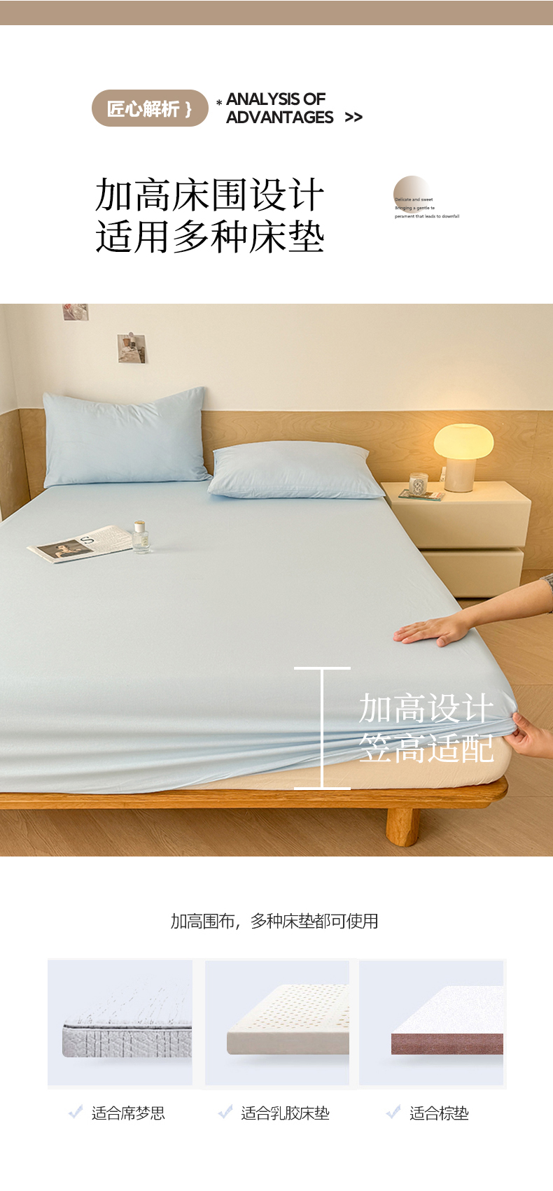• 91家纺网 家纺一手货源 找家纺 晓时候 2025新款100%全棉色织水洗棉床笠全棉床笠纯棉床笠 天蓝