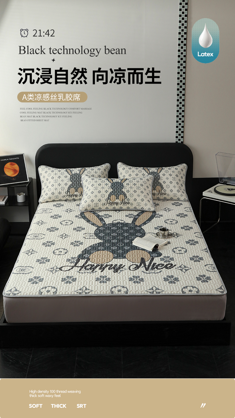 商品名称:圣比熊 2025新款大版印花纯色0.5乳胶凉席床笠款床裙款凉席三件套 床单款-蓝熊
