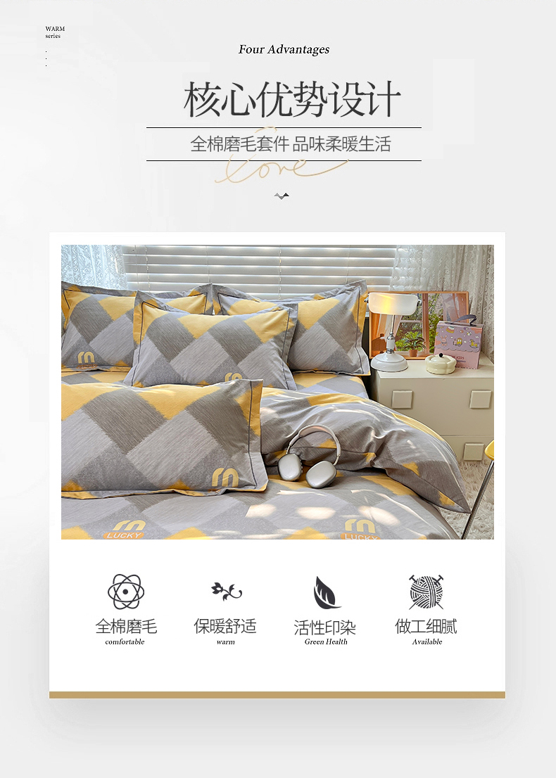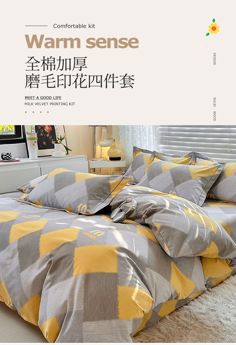 当前位置: 91家纺网 > 商品网购 > 床品套件 > 四件套 > 简约 2025新款全棉四件套活性生态磨毛四件套 灵感-黄