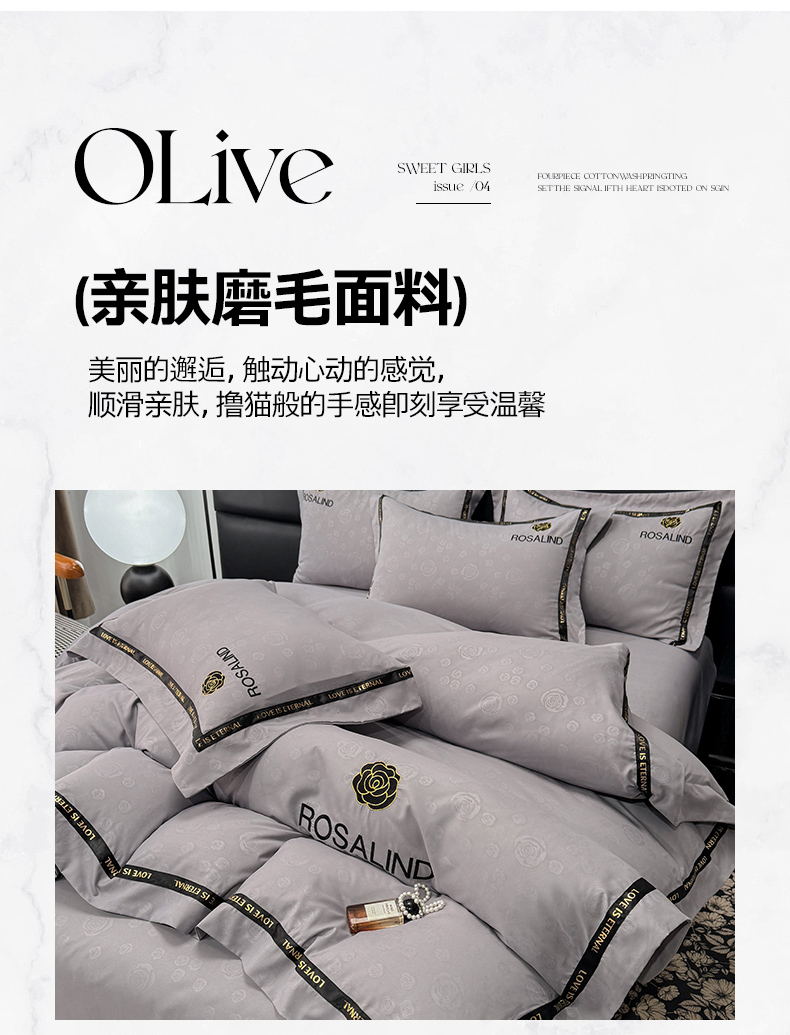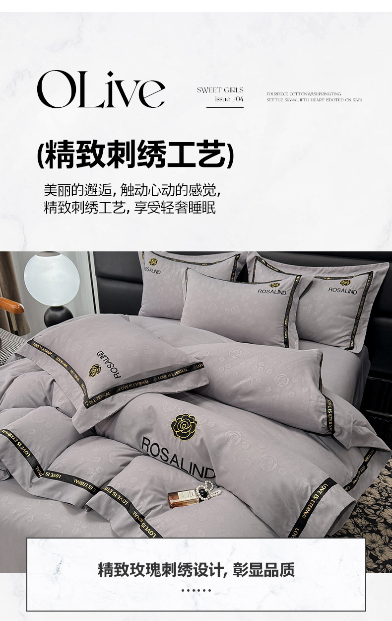 2025新款亲肤磨毛刺绣压花四件套--格调系列【提供买家秀】 格调-浅灰