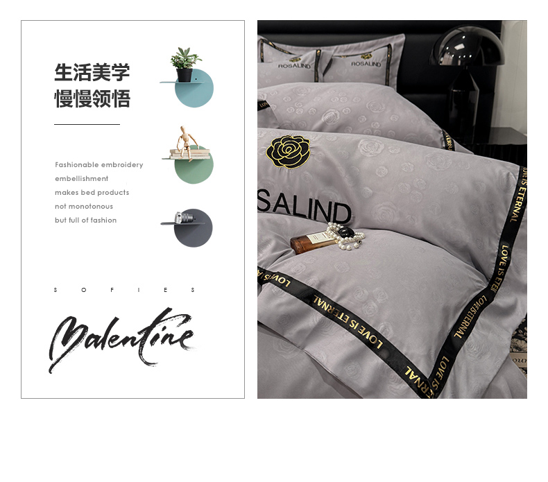 商品名称:2025新款亲肤磨毛刺绣压花四件套--格调系列【提供买家秀】 格调-浅灰