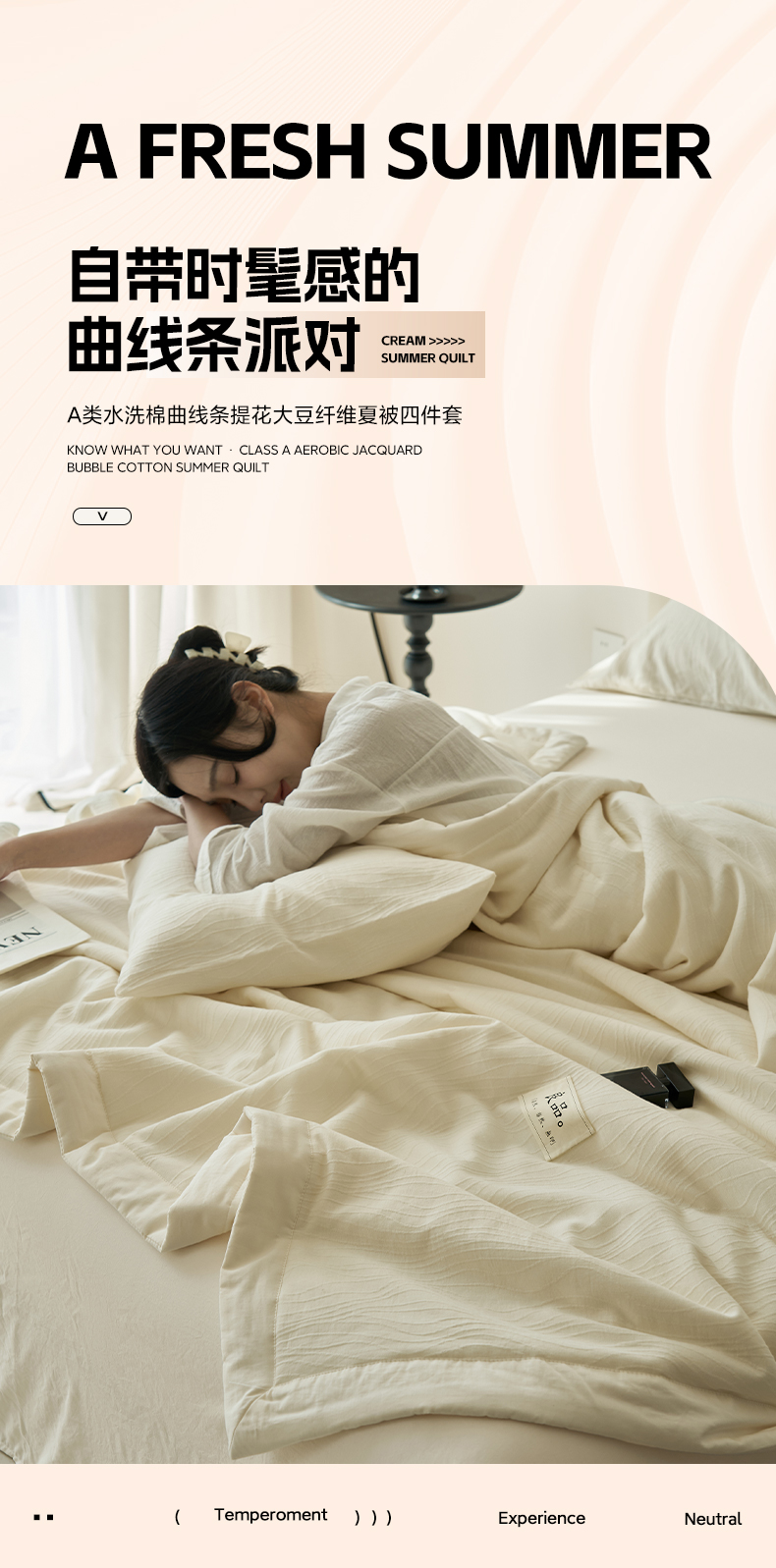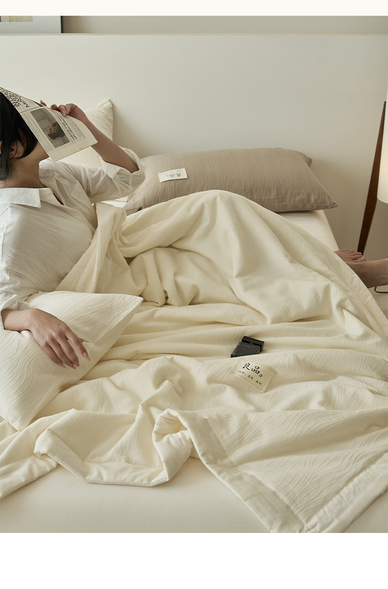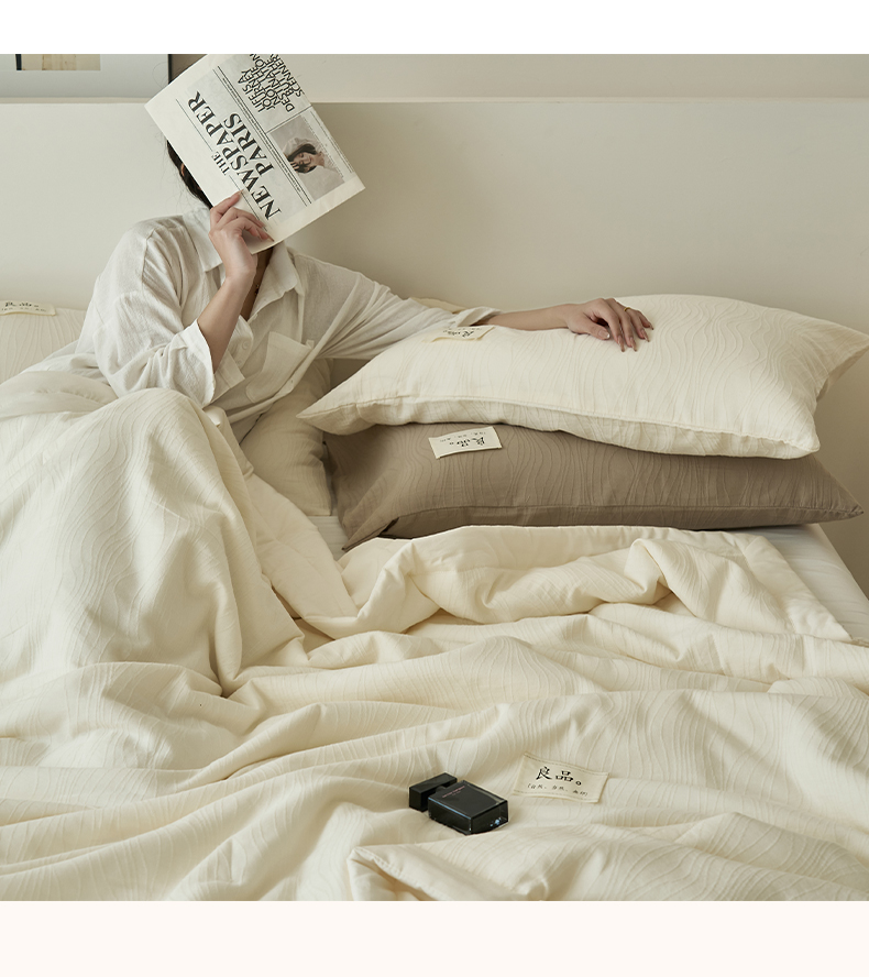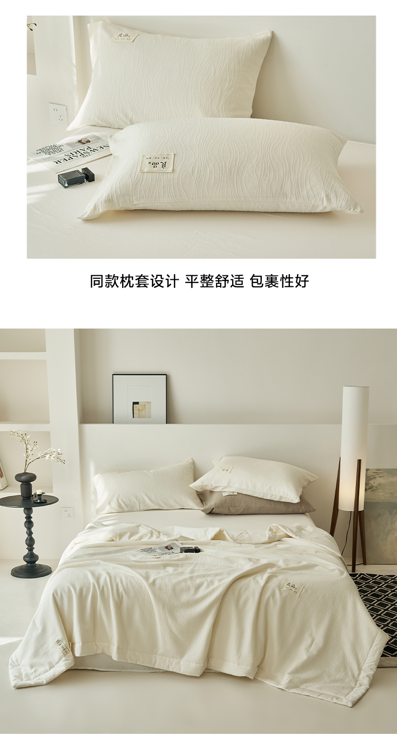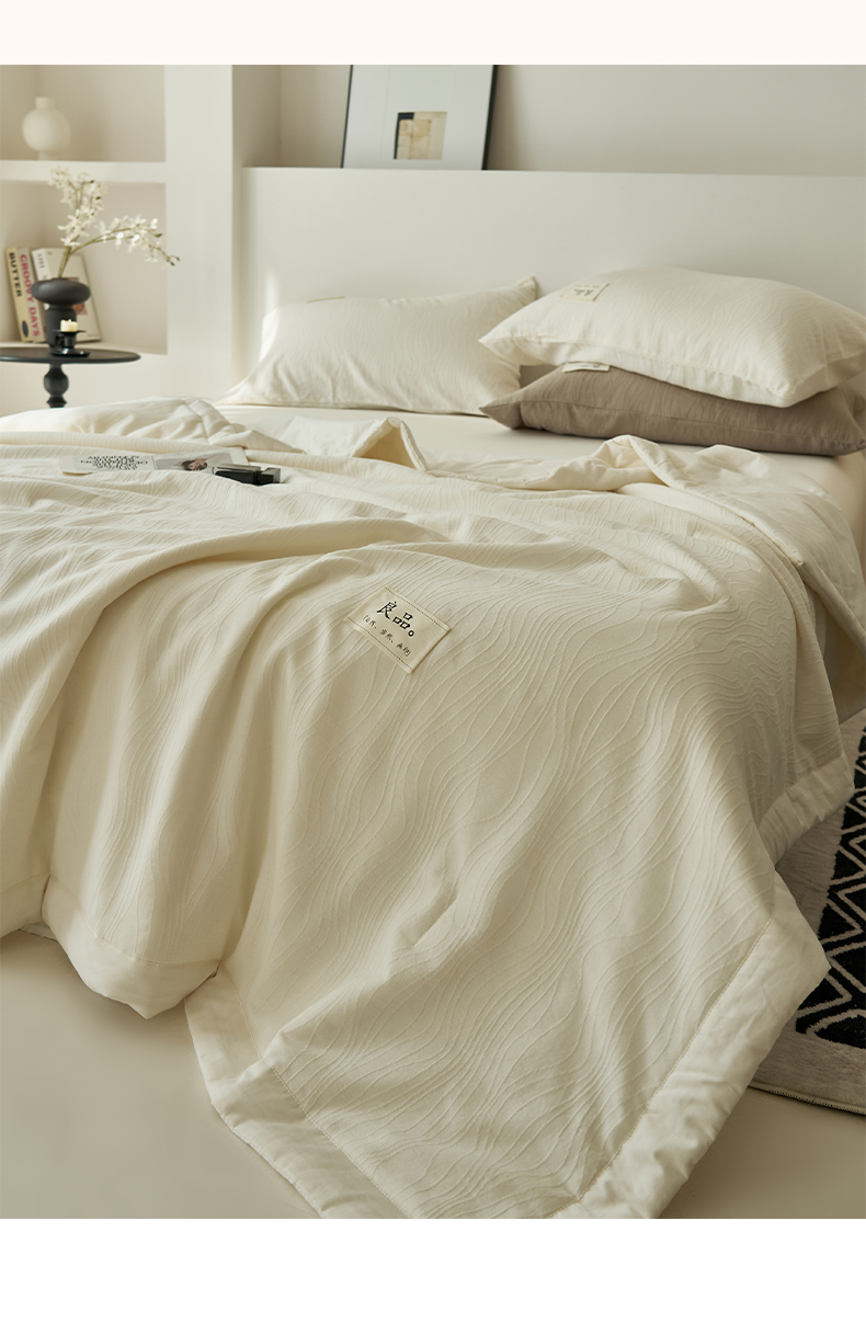 当前位置: 91家纺网 > 商品网购 > 被子 > 夏被 > 寐绸家纺 2025新款纯棉水洗棉三层提花大豆纤维夏被四件套 曲线条-雅白