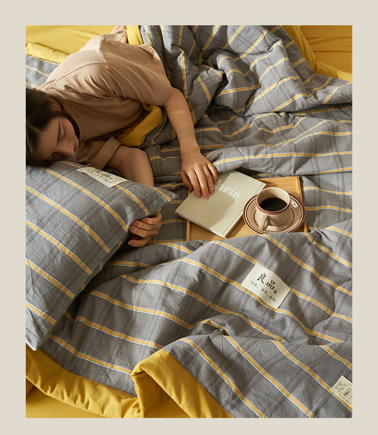 • 91家纺网 家纺一手货源 找家纺 寐绸家纺 2025新款纯棉水洗棉无印风新疆棉花夏被四件套 经典格