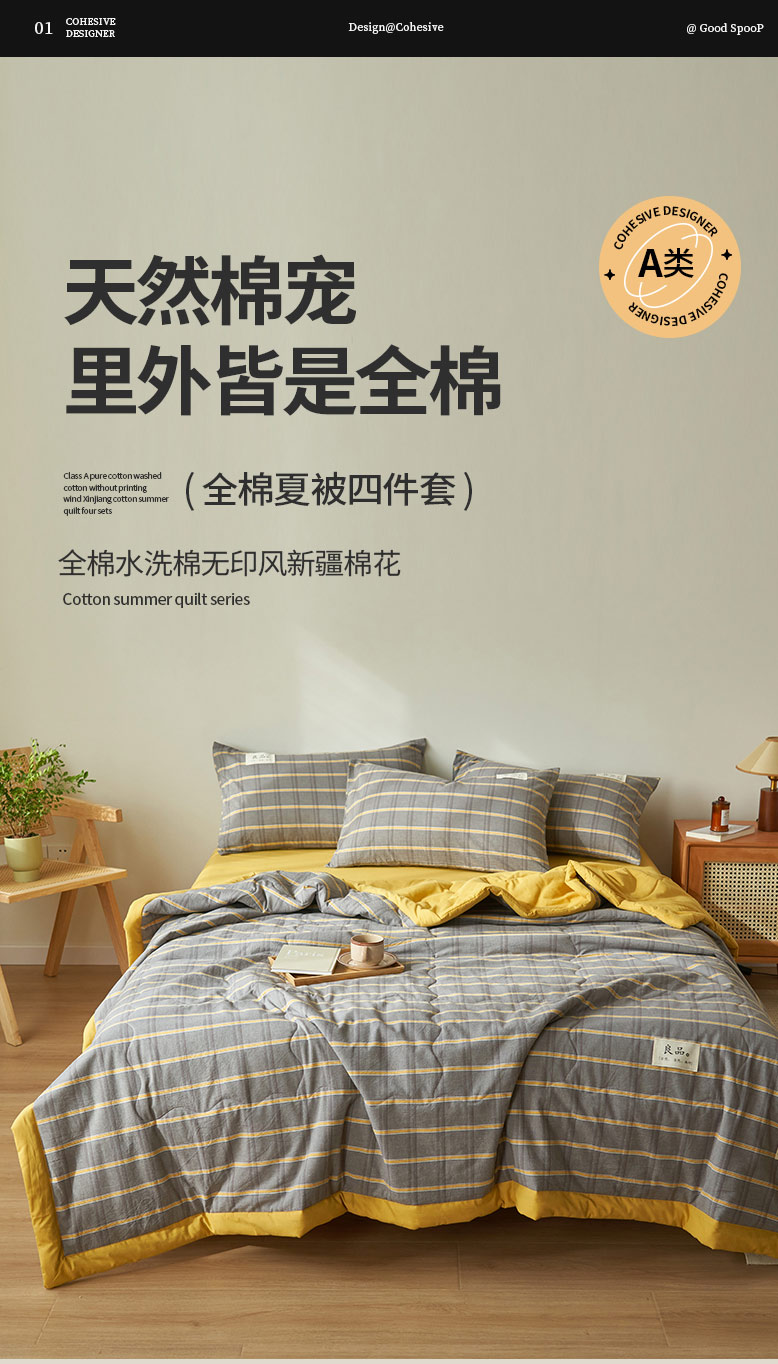 • 91家纺网 家纺一手货源 找家纺 寐绸家纺 2025新款纯棉水洗棉无印风新疆棉花夏被四件套 围希曼格