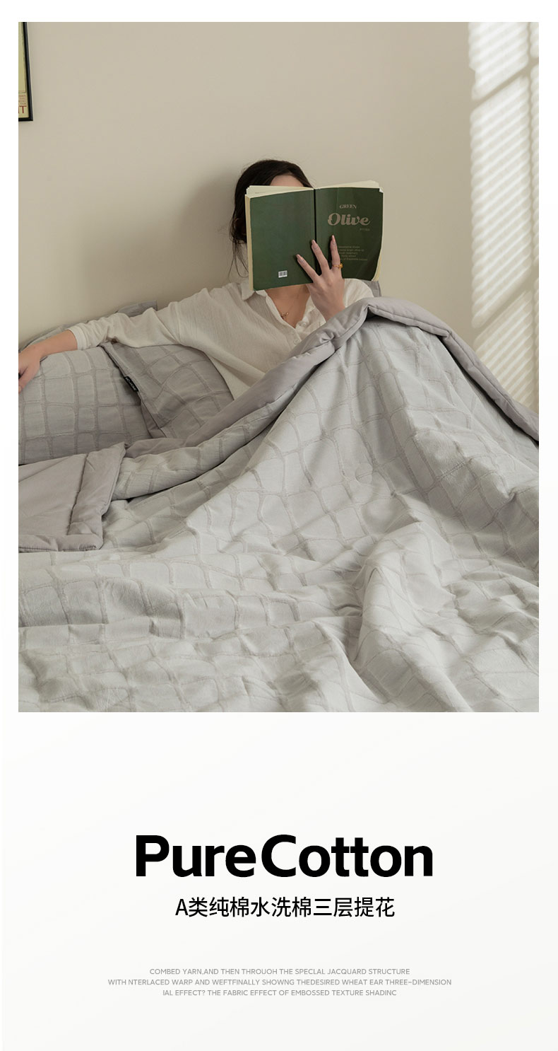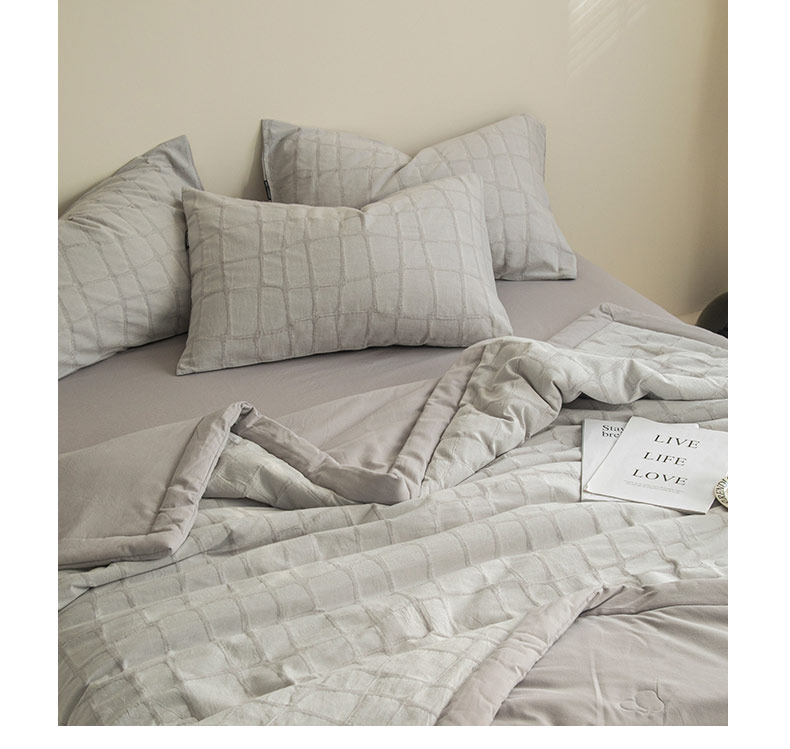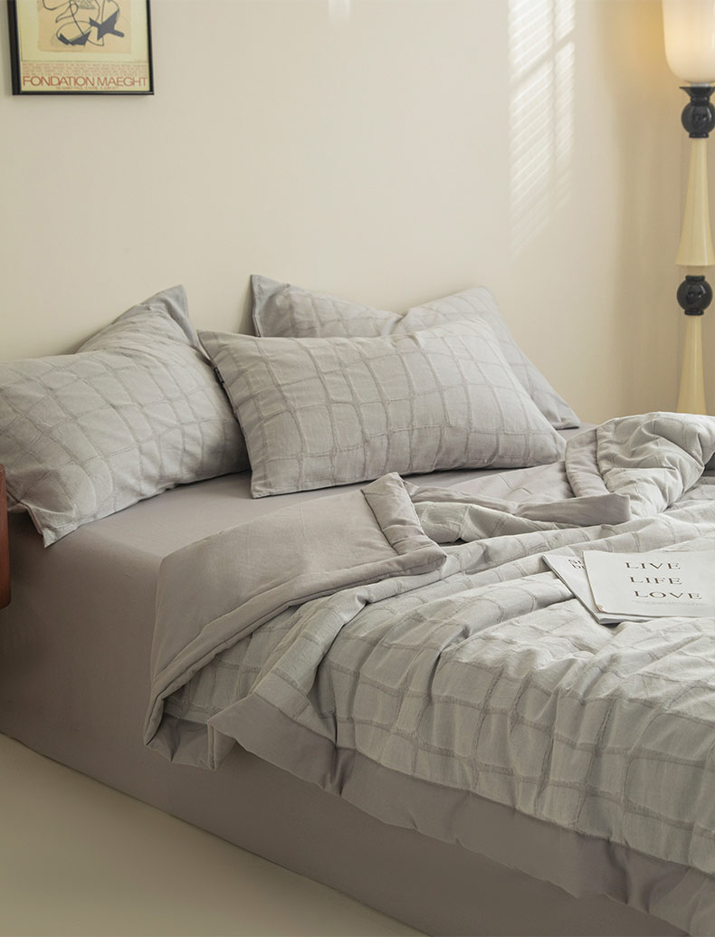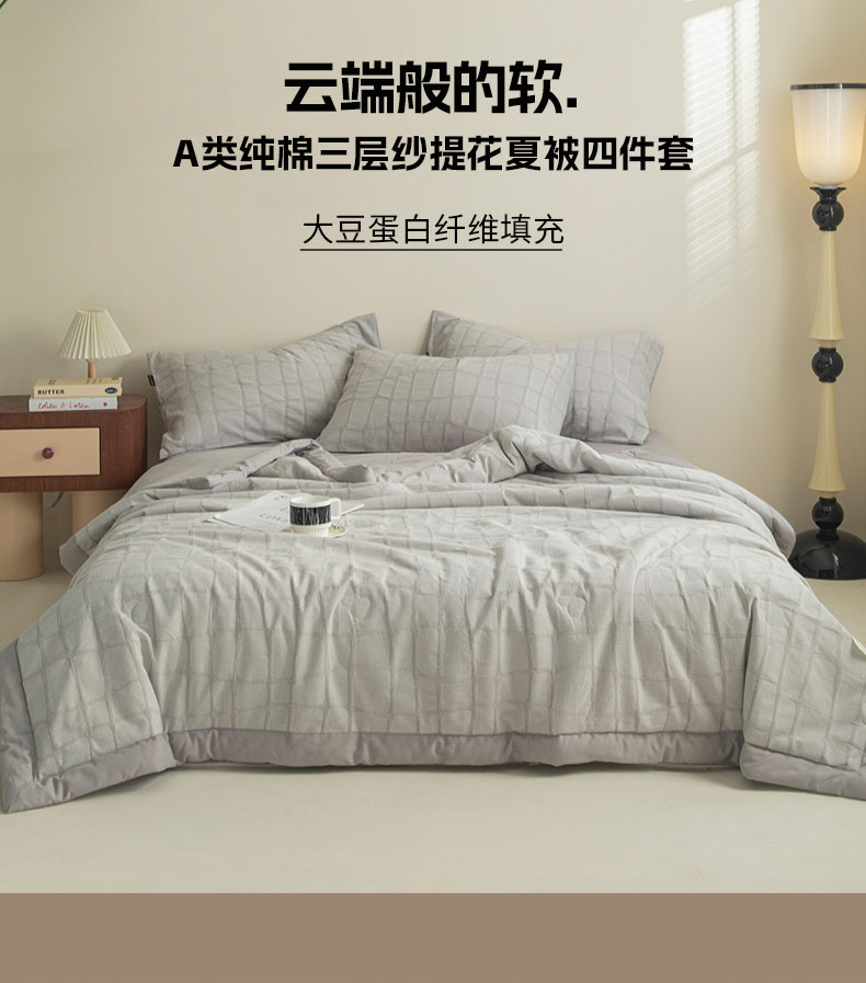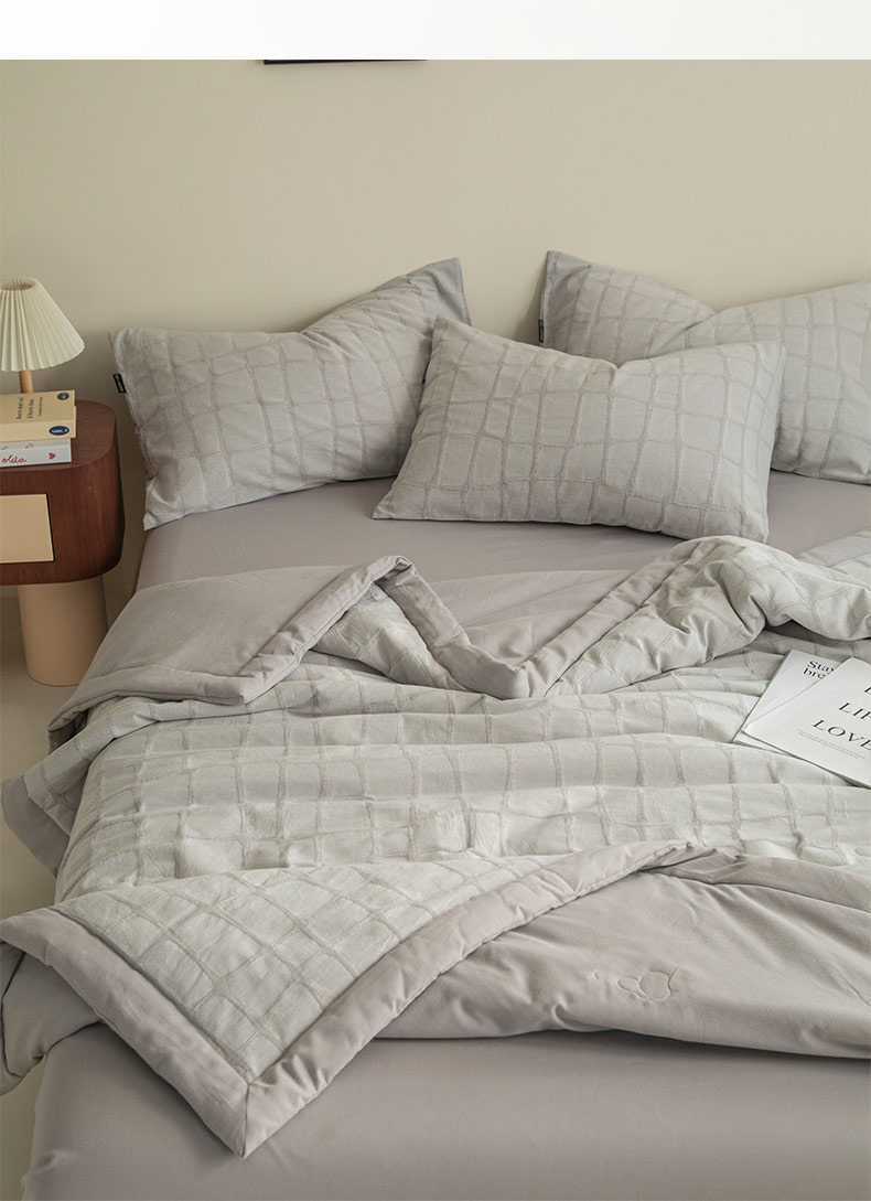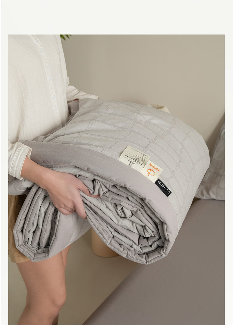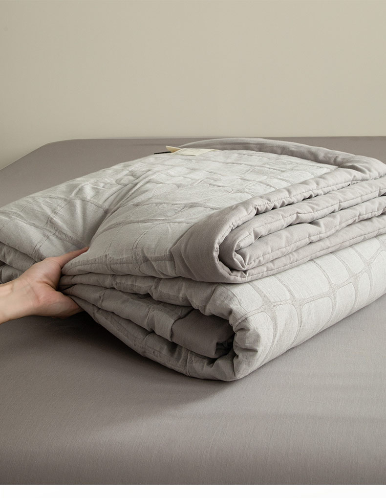 • 91家纺网 家纺一手货源 找家纺 寐绸家纺 2025新款纯棉水洗棉三层石头纹提花大豆纤维夏被四件套 石头纹夏被-浅灰