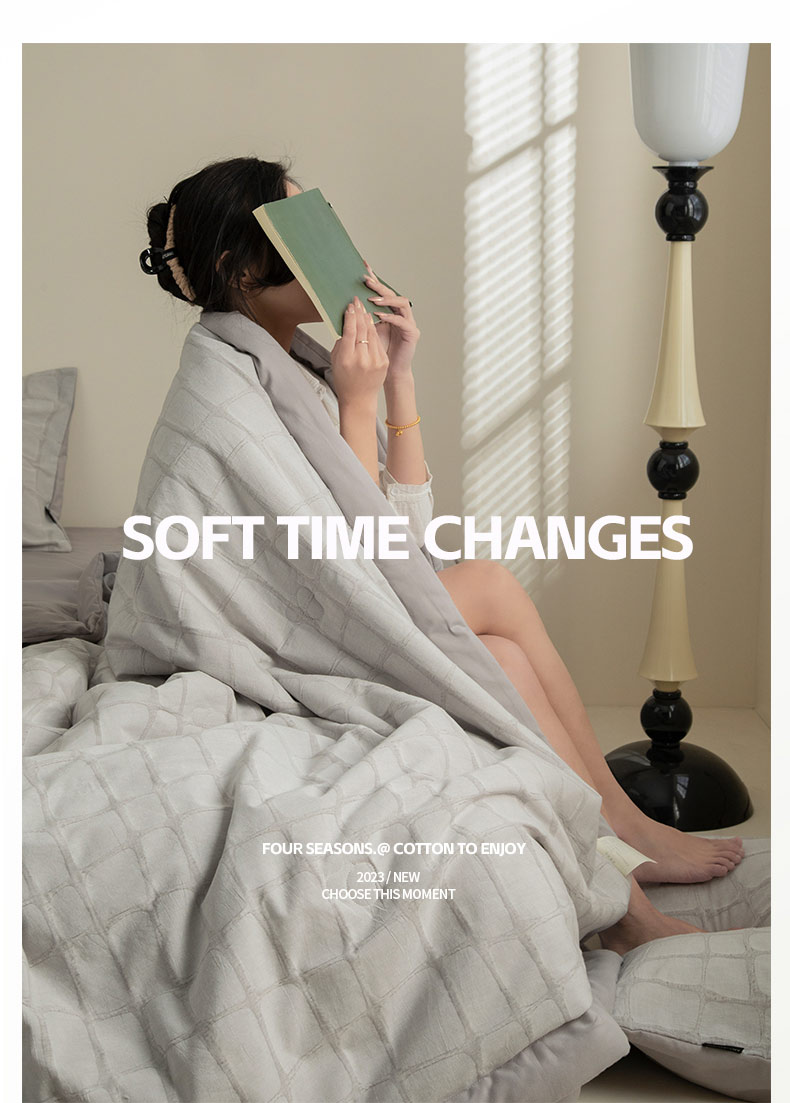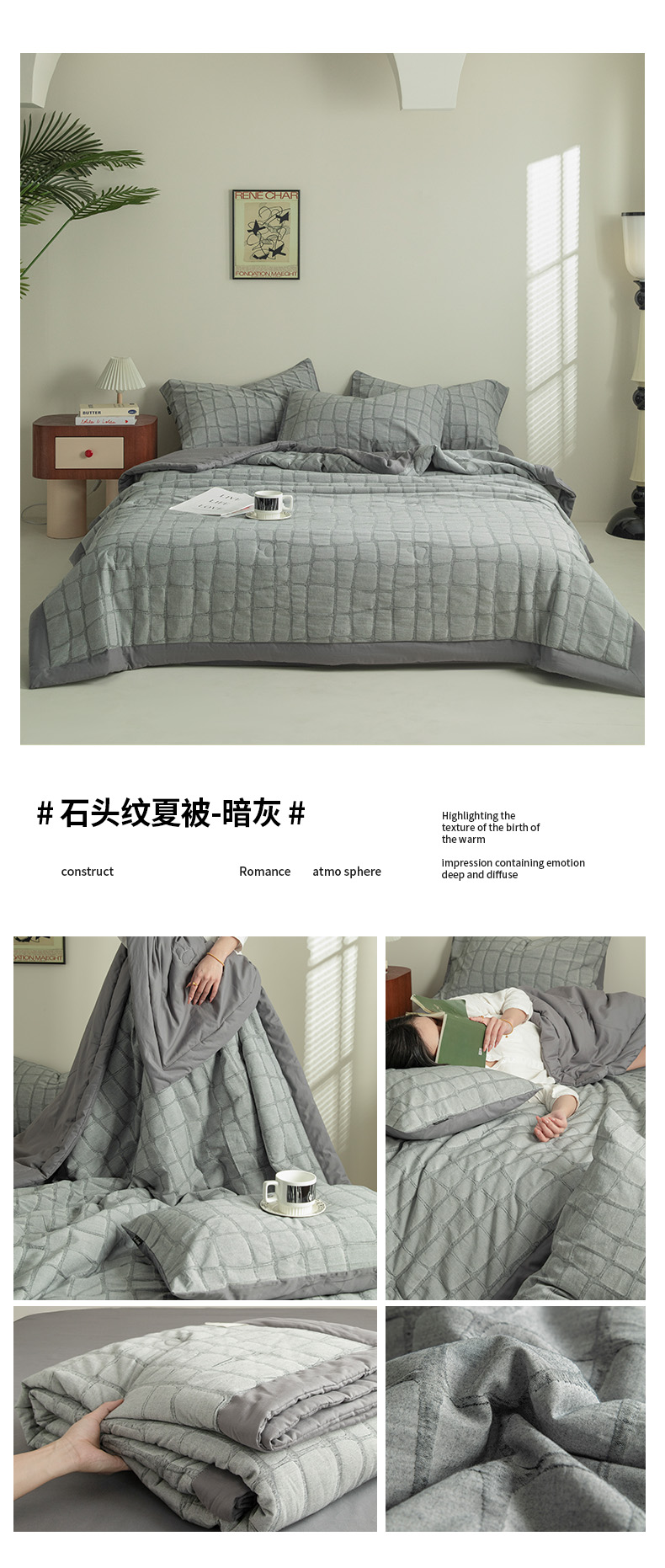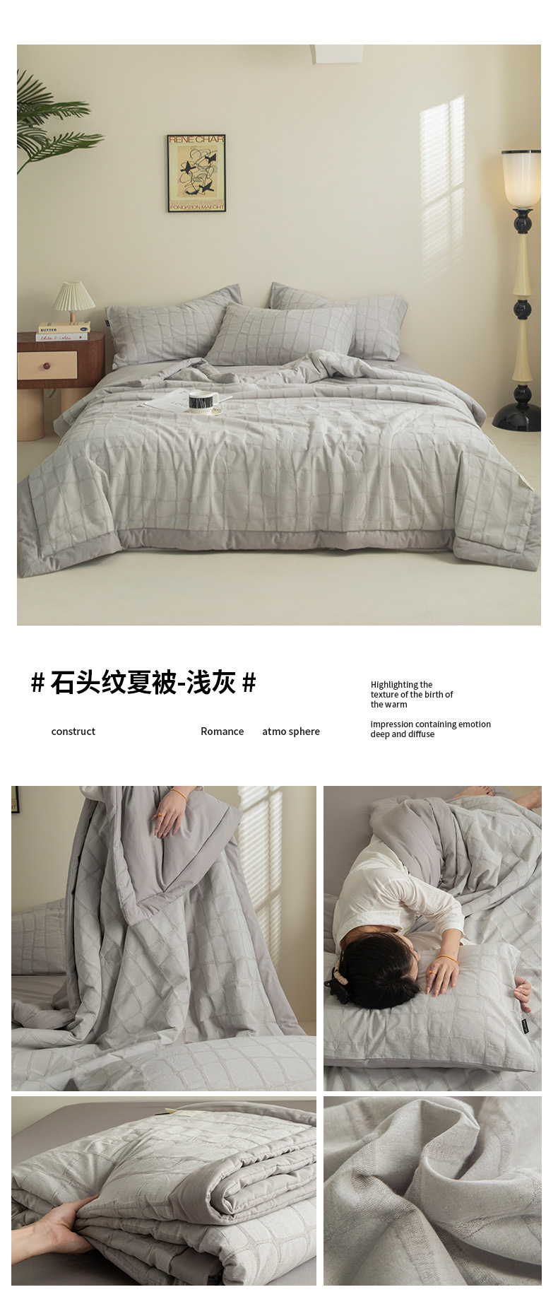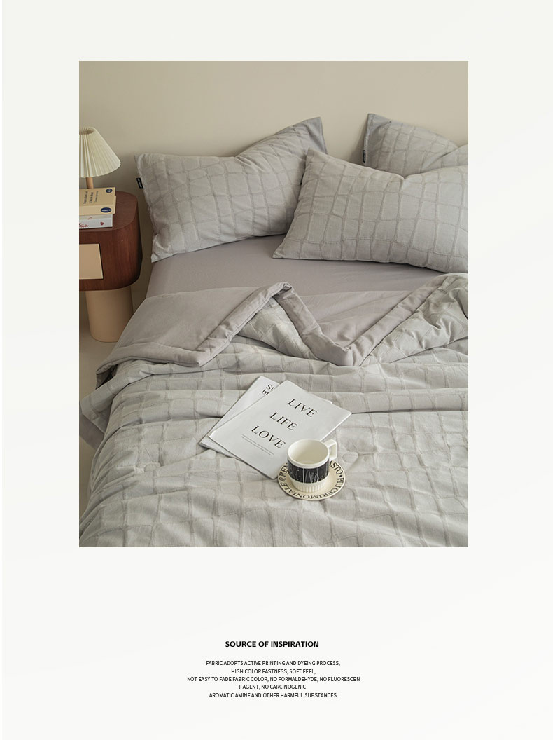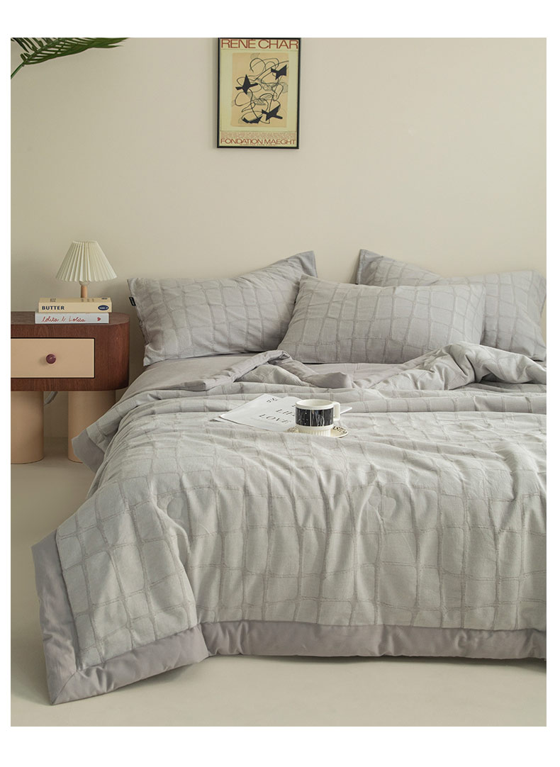 • 91家纺网 家纺一手货源 找家纺 寐绸家纺 2025新款纯棉水洗棉三层石头纹提花大豆纤维夏被四件套 石头纹夏被-浅灰