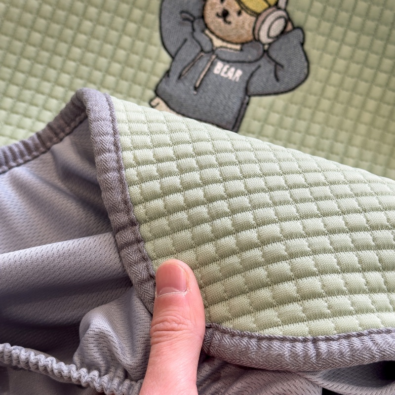 当前位置: 91家纺网 > 商品网购 > 床上用品 > 床单 > 孩子王家纺 2025新款冰豆豆华夫格绣花床单床笠-练练熊系列 果绿床笠