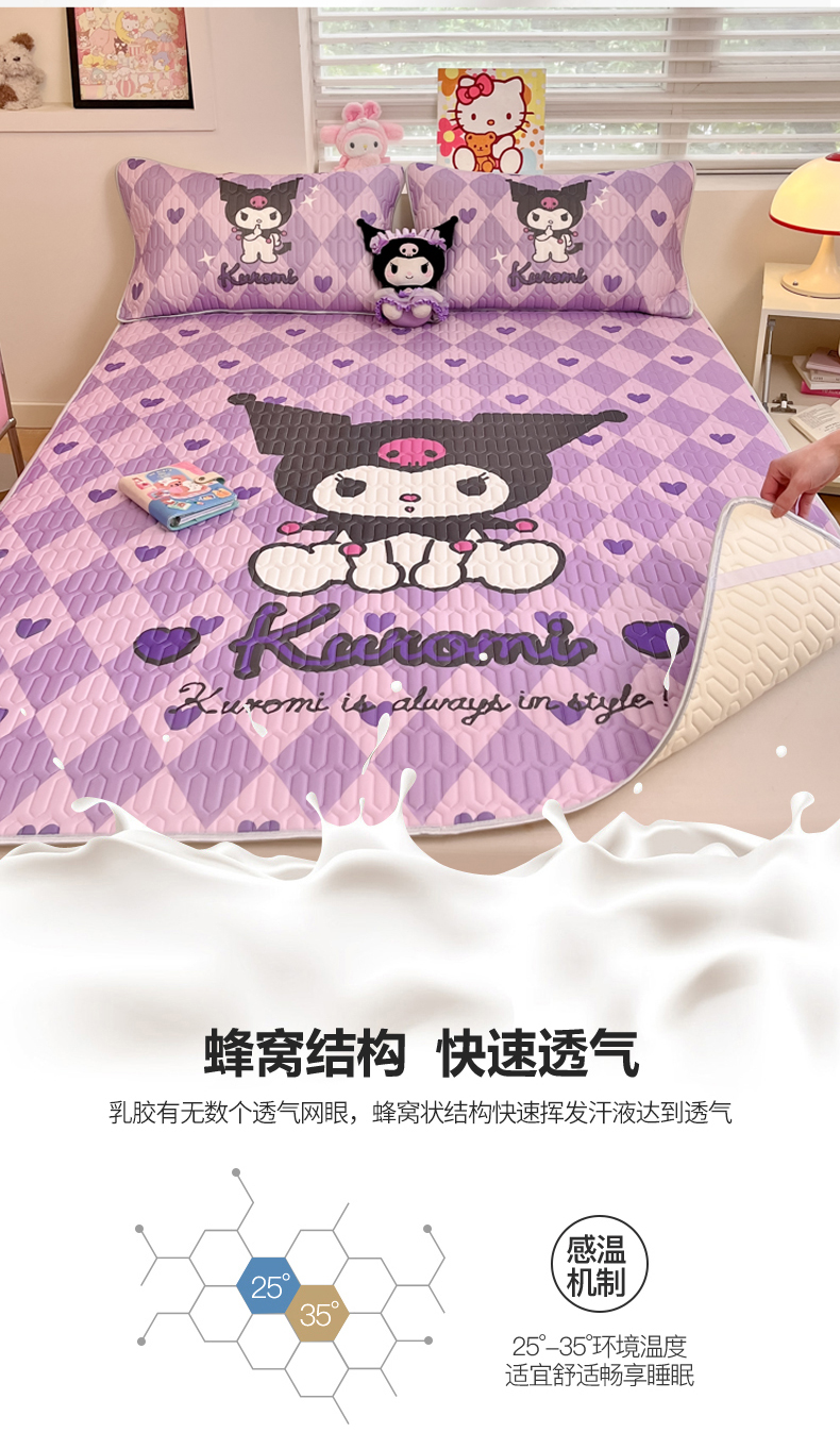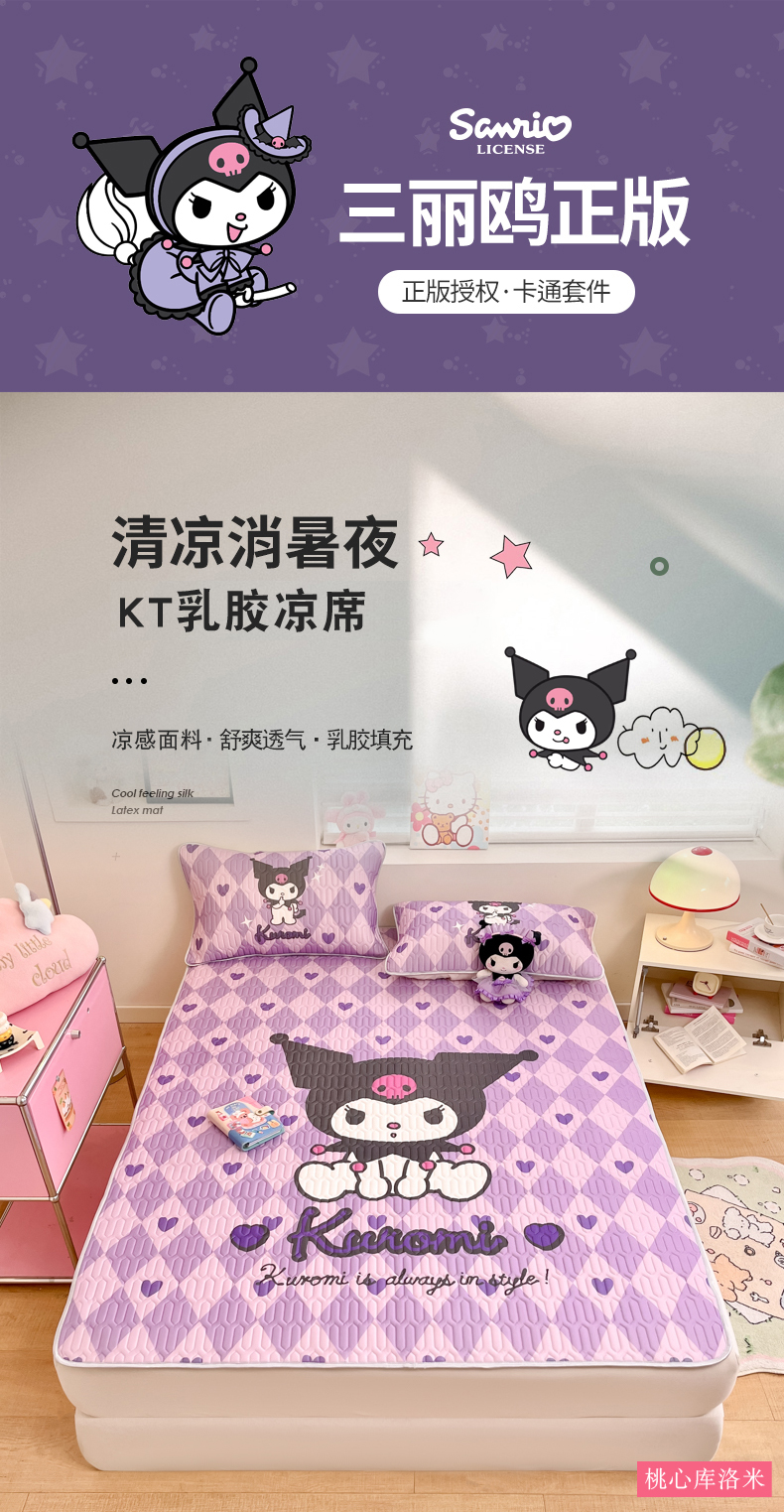 金爱家 2025新款正版三丽鸥凉感乳胶凉席 桃心库洛米