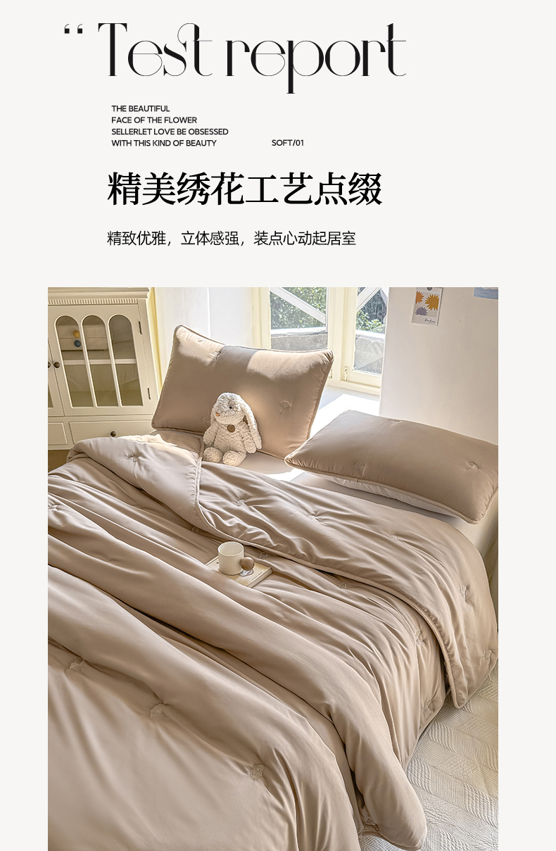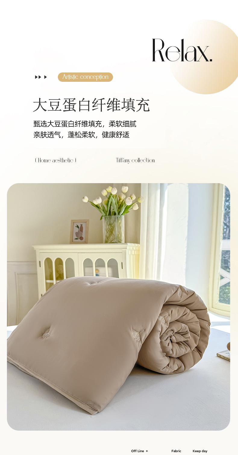 • 91家纺网 家纺一手货源 找家纺 萌飞 2025新款A类亲肤大豆棉刺绣夏被四件套 银杏叶驼