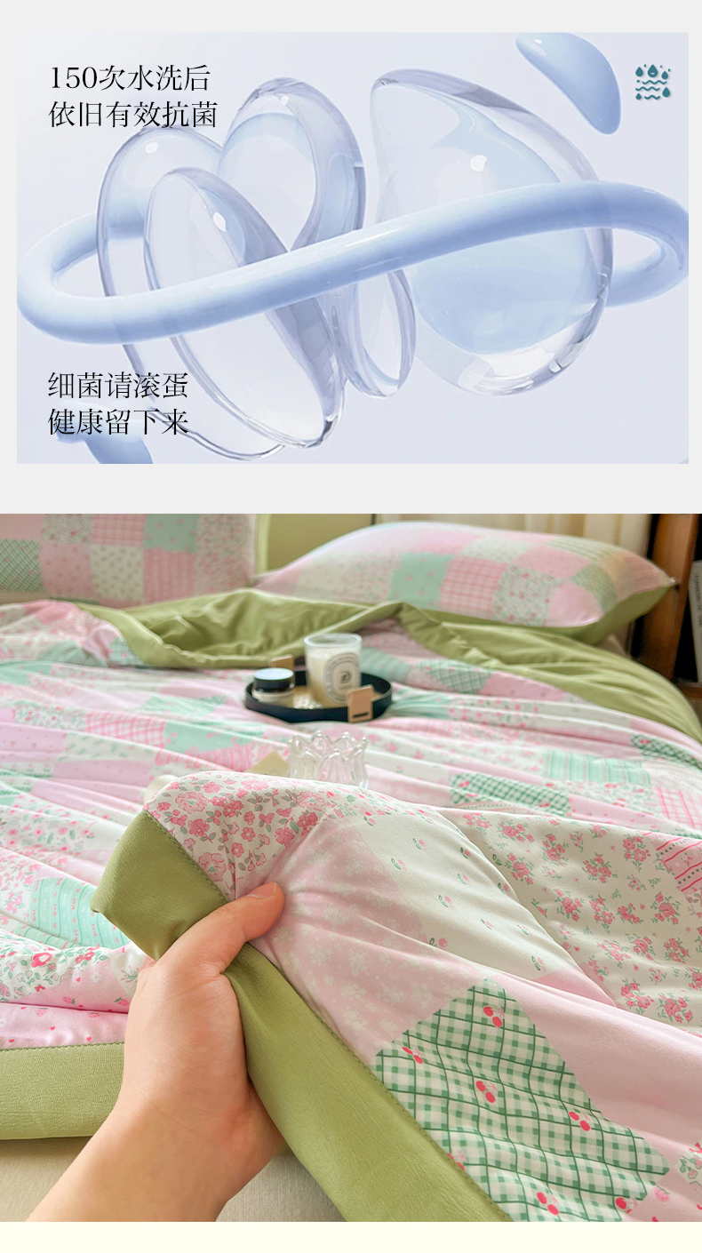 • 91家纺网 家纺一手货源 找家纺 欢乐季  2025新款A类抗菌双层纱大豆夏凉被空调被夏被四件套 百福粉