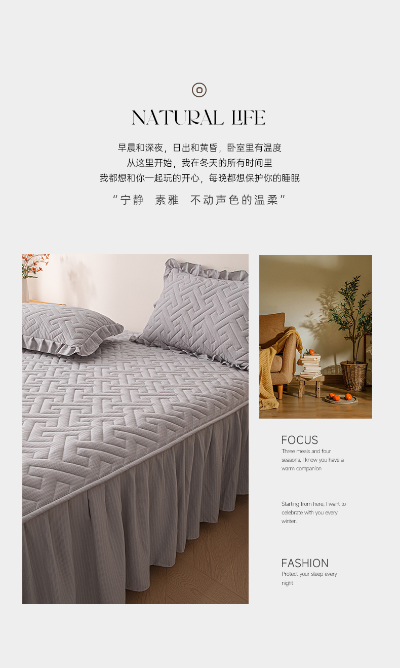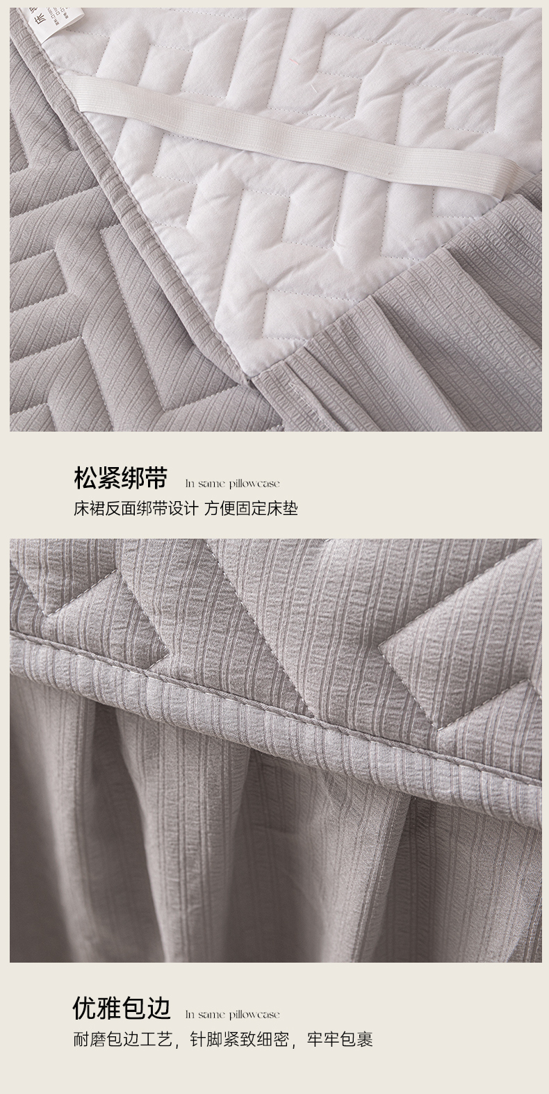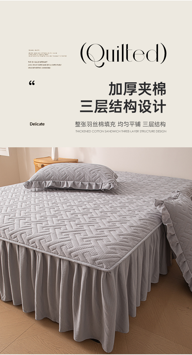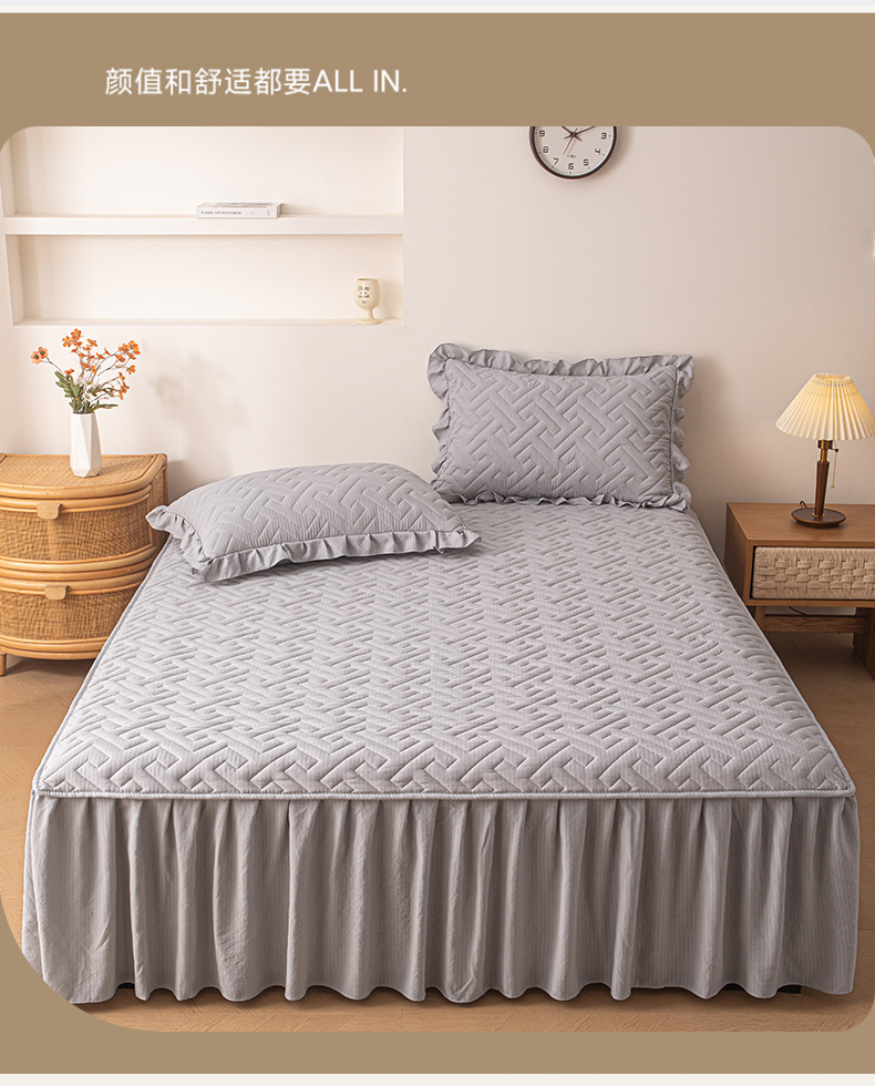商品名称:屹成家纺 2025新款水洗泡泡棉床裙 浅灰