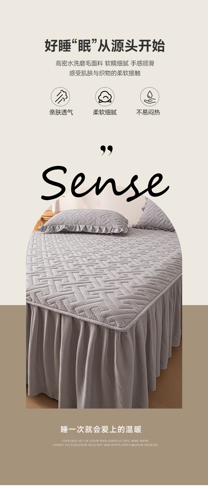 (总)屹成家纺 2024新款天竺棉夹棉床裙,玳瑁紫,典雅驼,豆沙,格调蓝,经典灰,孔雀绿