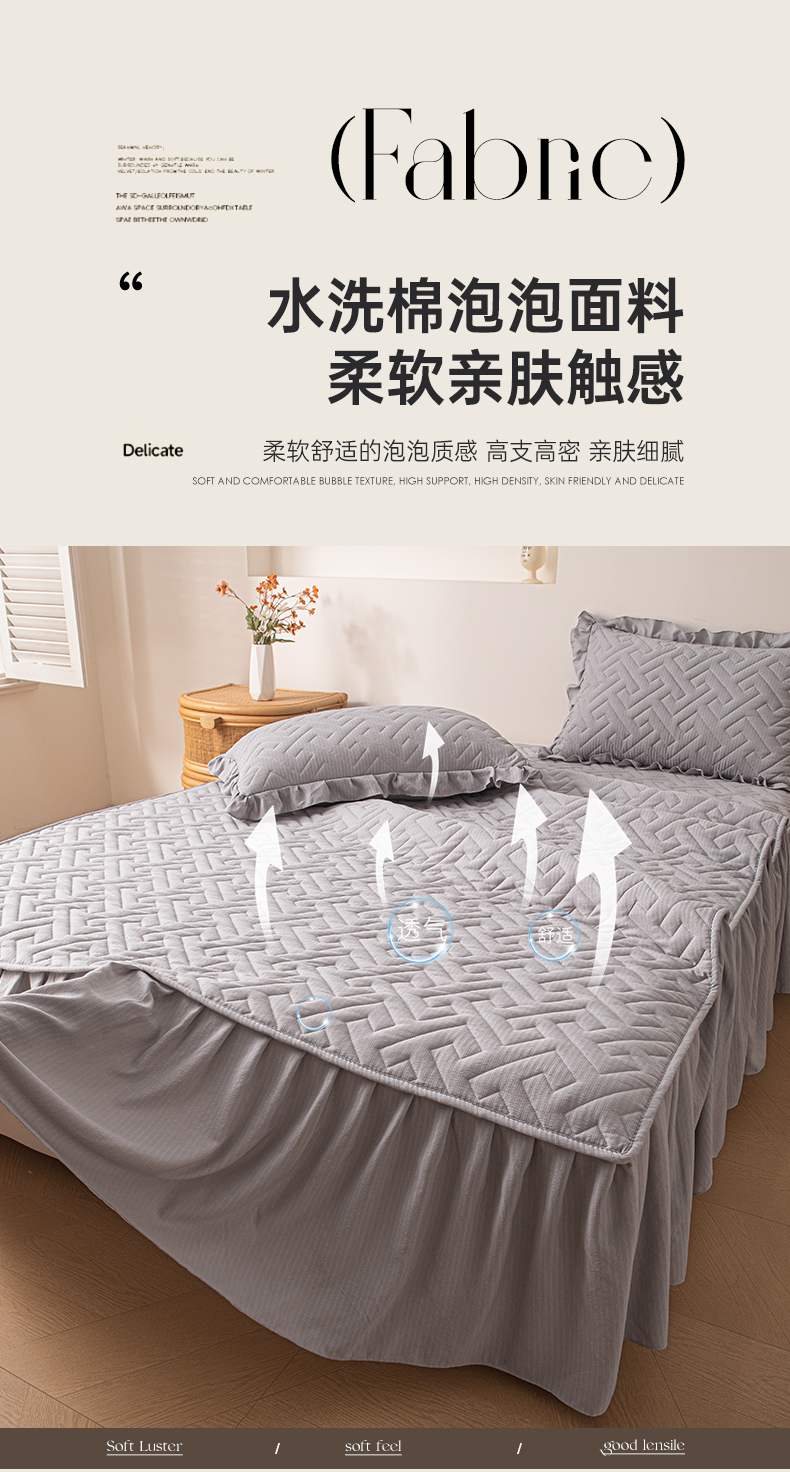屹成家纺 2025新款水洗泡泡棉床裙 浅灰
