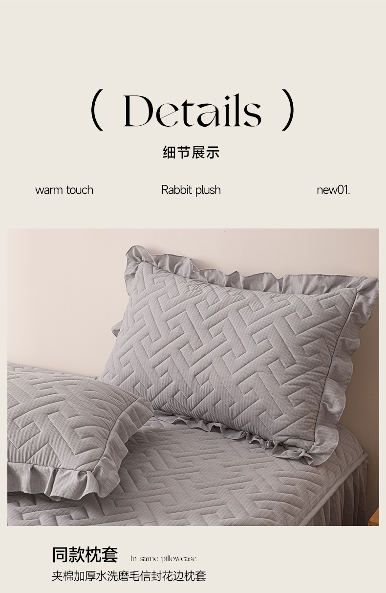 (总)屹成家纺2025新款水晶绒夹棉绗缝蕾丝床裙三件套(塞纳河畔)床裙单件起售价不低于105元,大红,豆沙,翡翠绿,粉玉,橄榄绿,蔚蓝,银灰