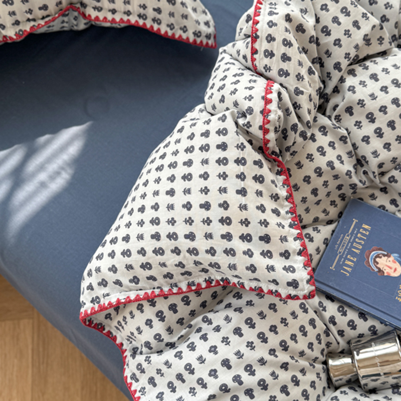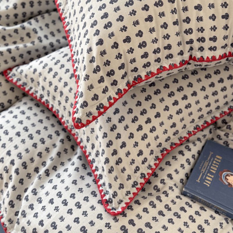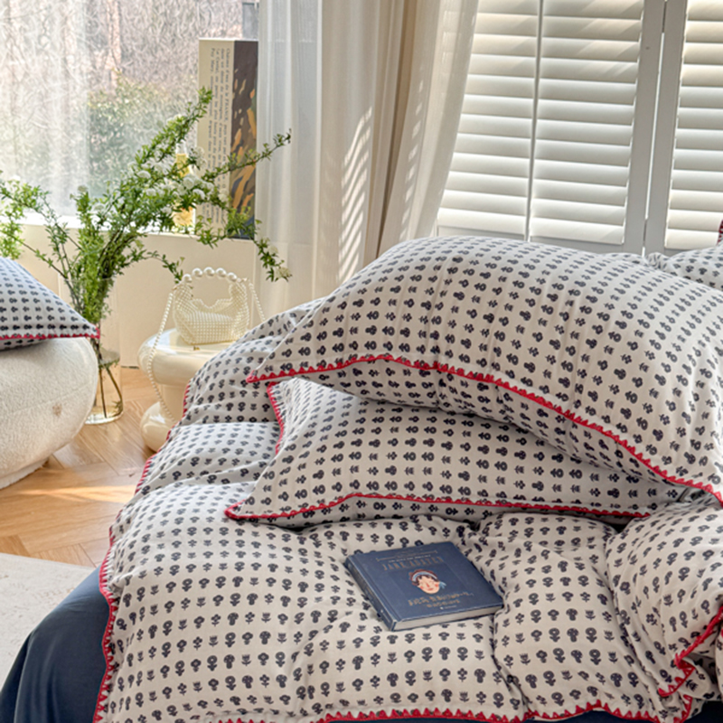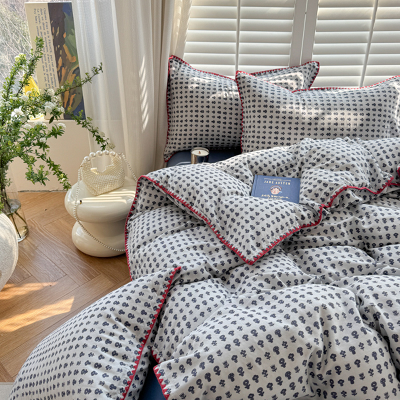 当前位置: 91家纺网 > 商品网购 > 床品套件 > 四件套 > 全棉普通四件套 > 金丝鸟家纺 2025新款全棉双层纱贝壳边四件套花卉系列 吉祥