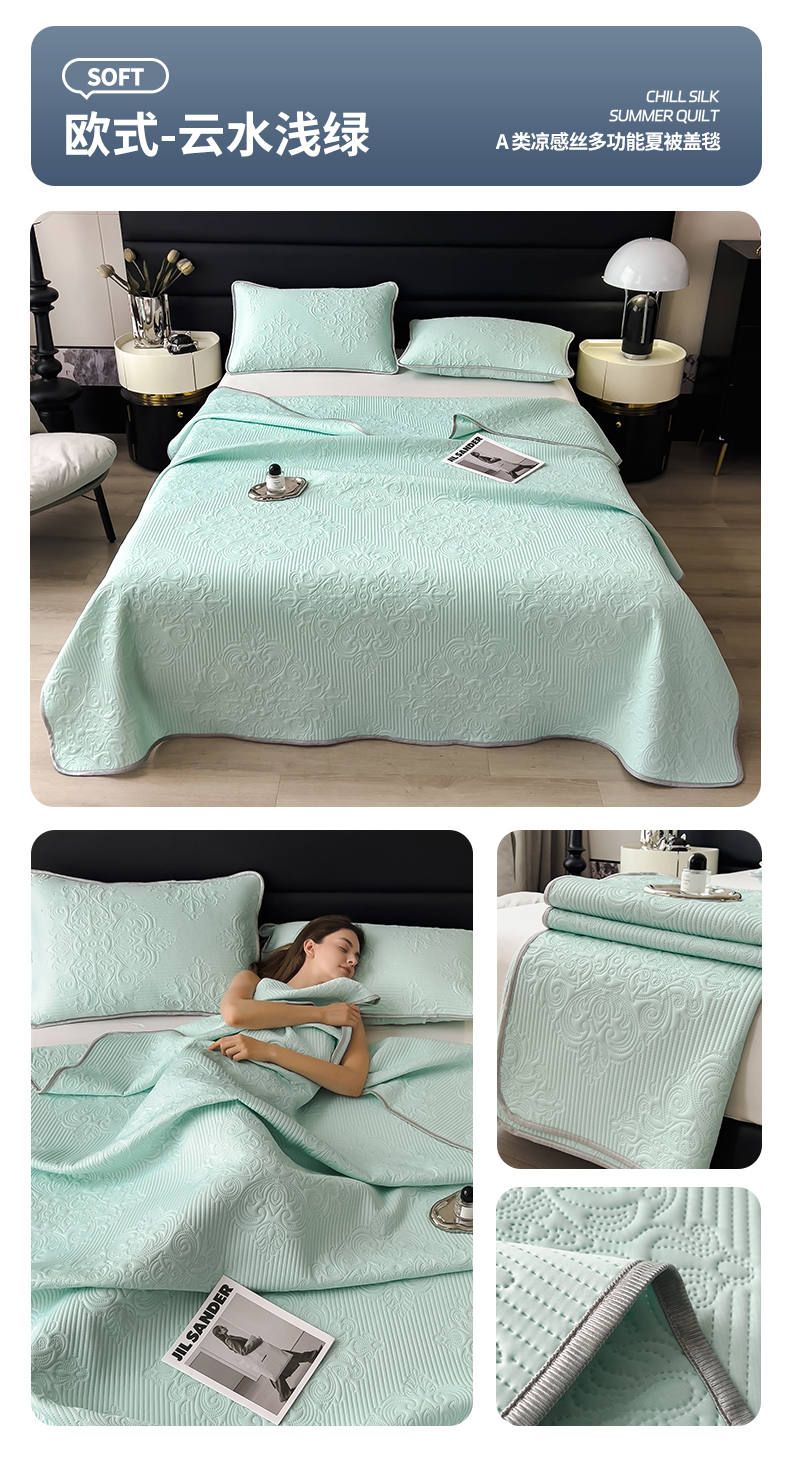 商品名称:世纪绒品 2025新款A类凉感科技欧式多功能夏被床单盖毯 欧式-云水浅绿