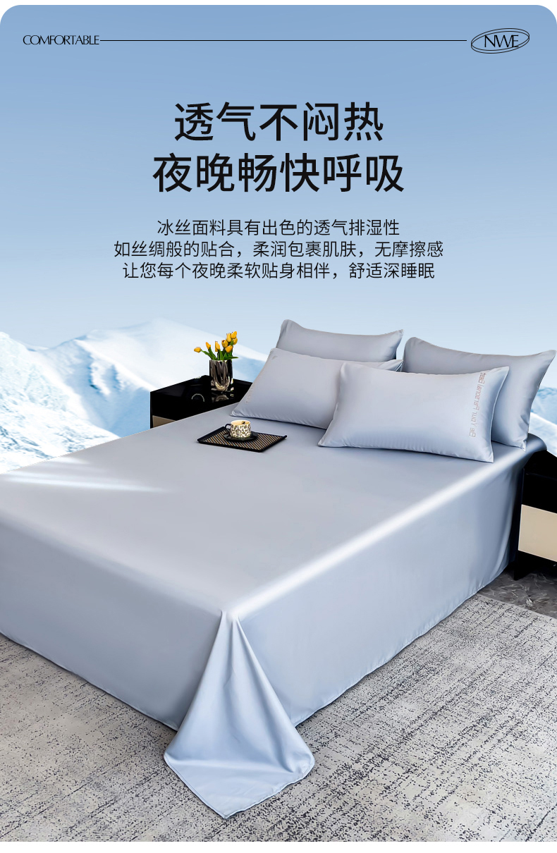 (总)纽缦家纺 2025新款纯色提花冰丝系列床单单件-单床单