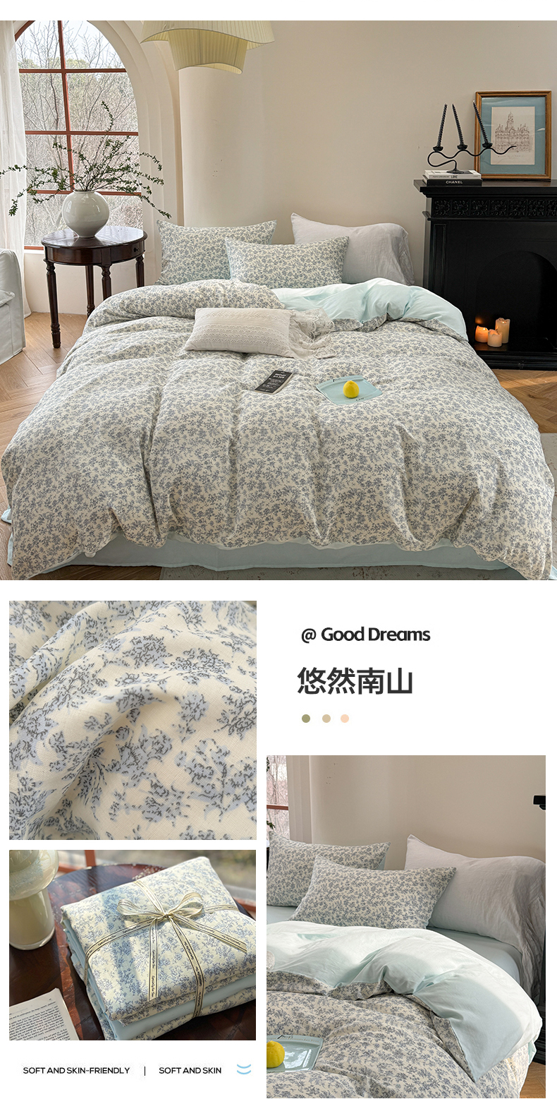 商品名称:2025新款全棉有氧双层纱四件套-碎花系列 月满西楼