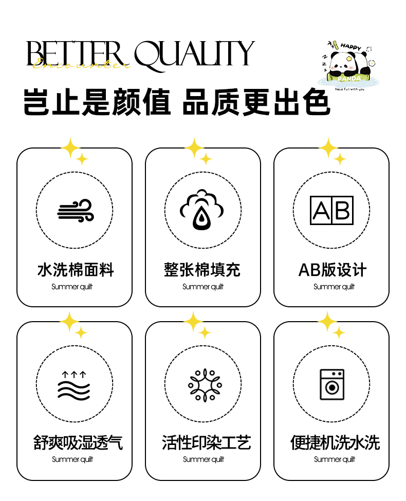 商品名称:席万佳 2025新款直播热款印花夏凉被空调被被子被芯水洗棉夏被 熊猫物语