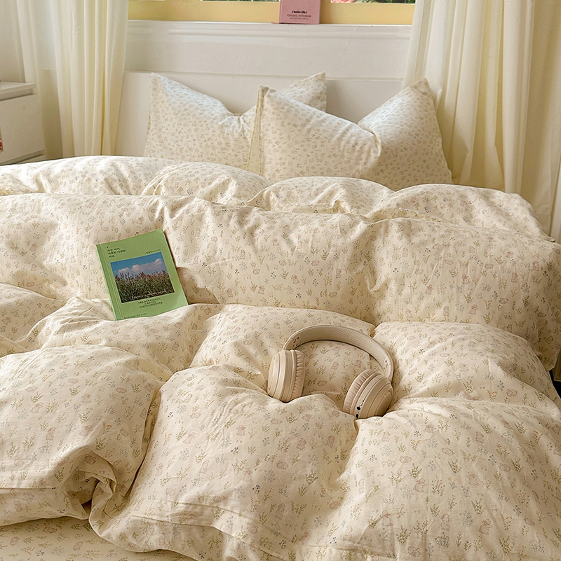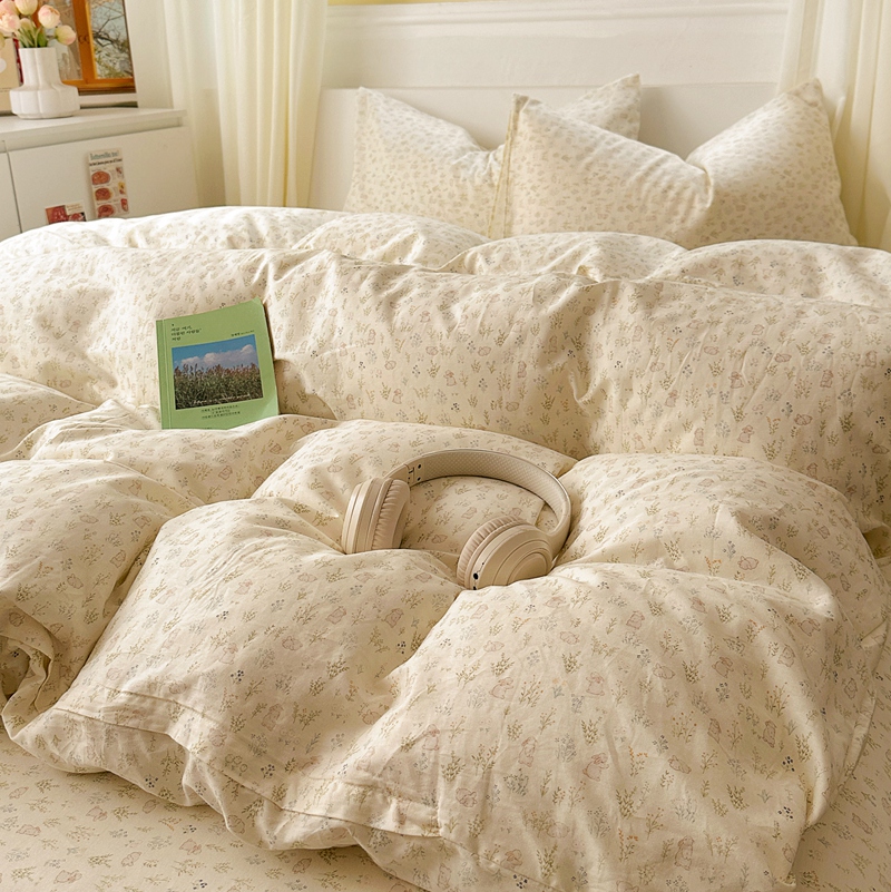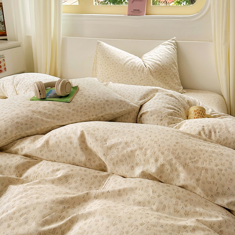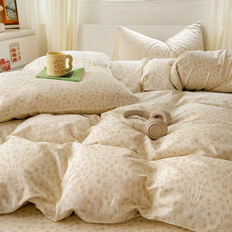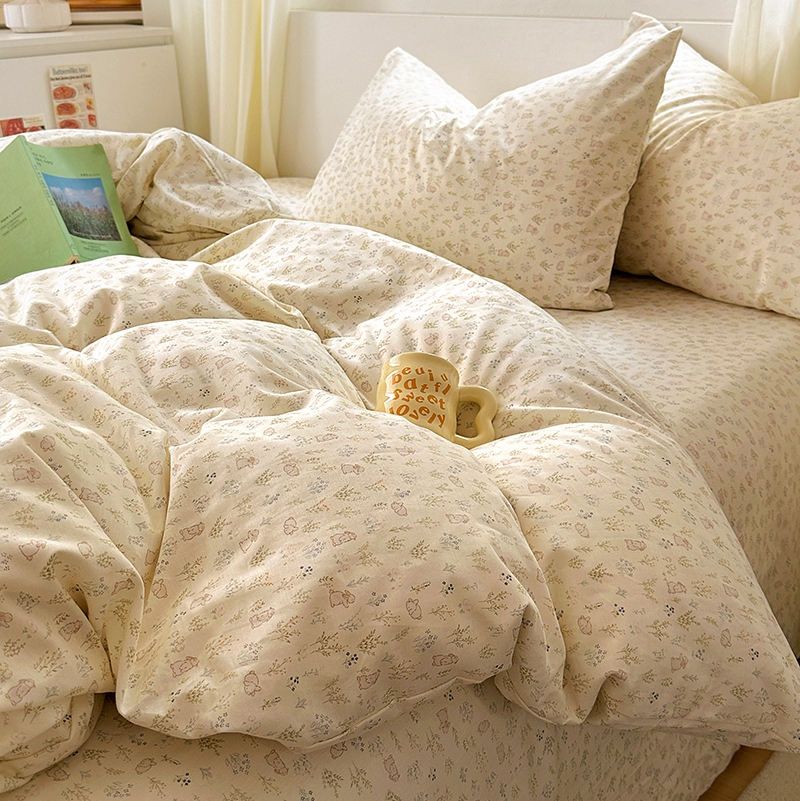 (总)田野 2022新款水洗棉小清新小碎花全棉四件套,花丛,花涧,绿婉,曼舞,桃夭,甜馨草莓,兔兔,银杏