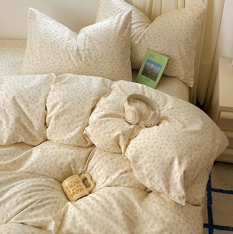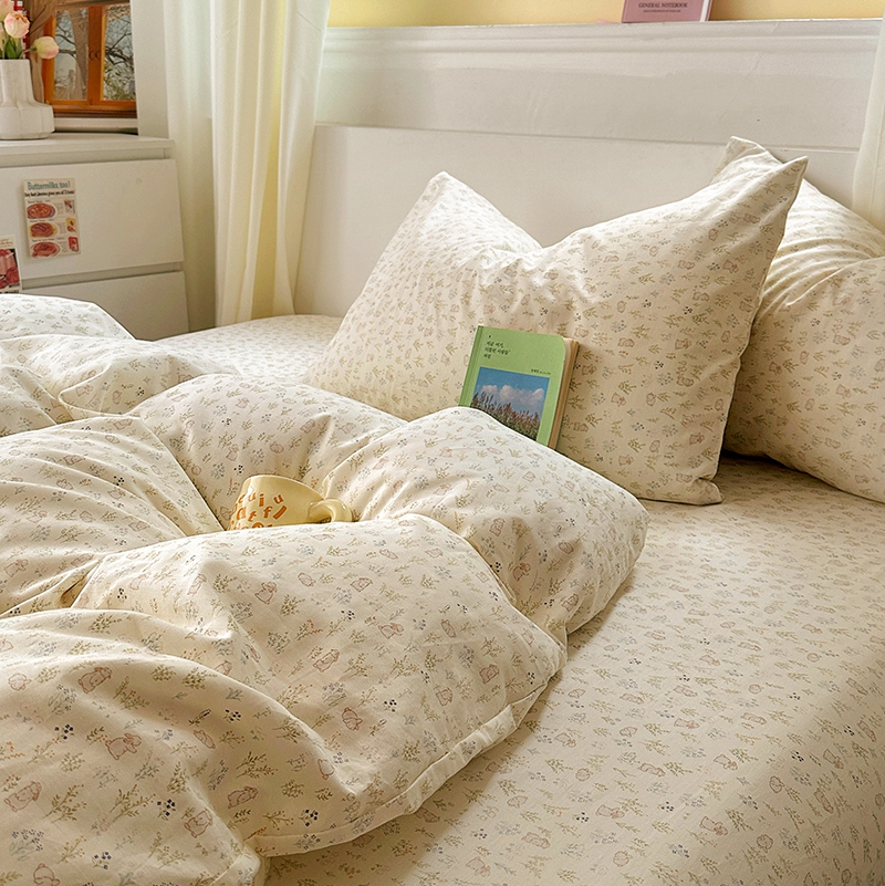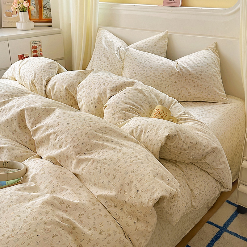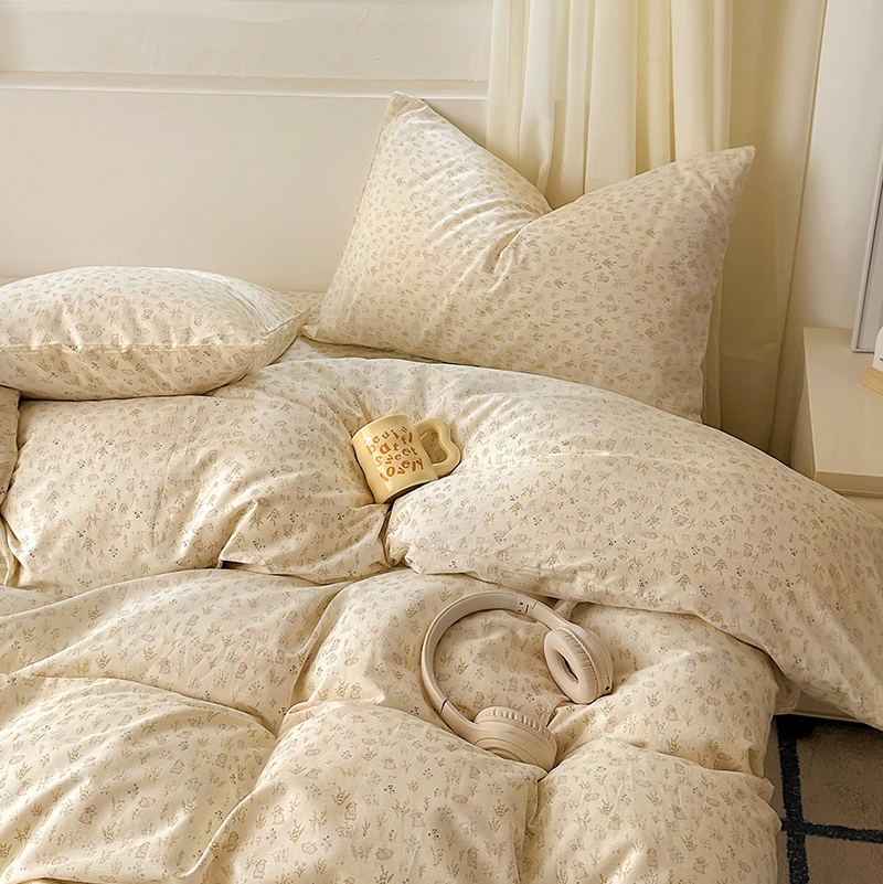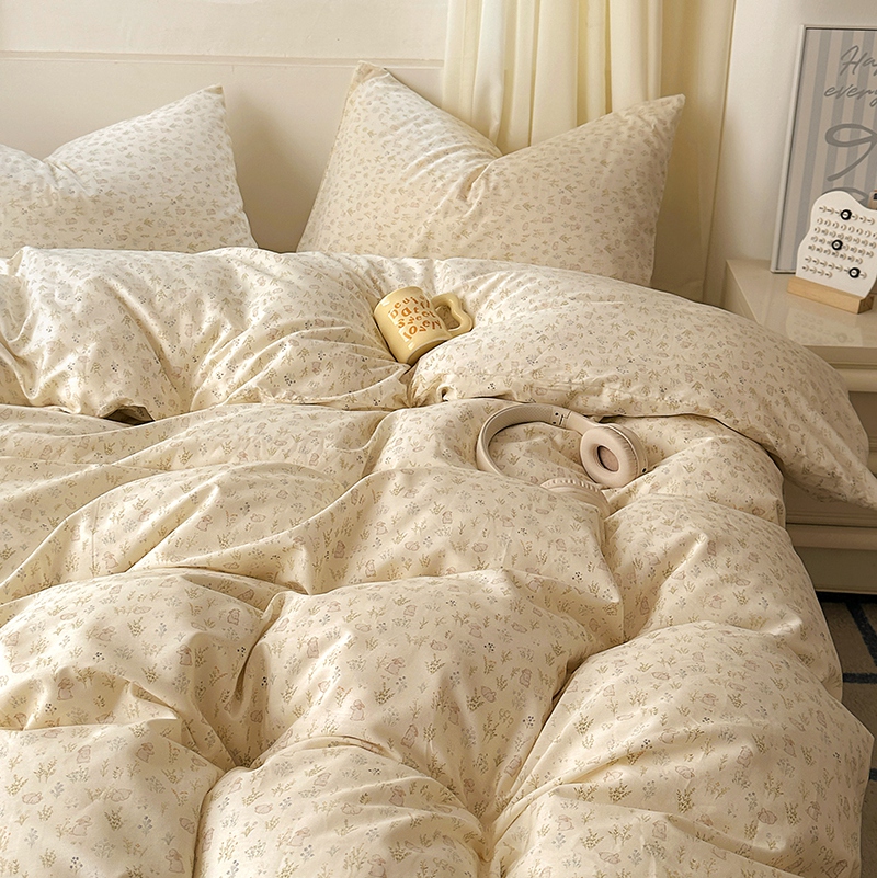 (总)田野 2022新款水洗棉小清新小碎花全棉四件套,花丛,花涧,绿婉,曼舞,桃夭,甜馨草莓,兔兔,银杏