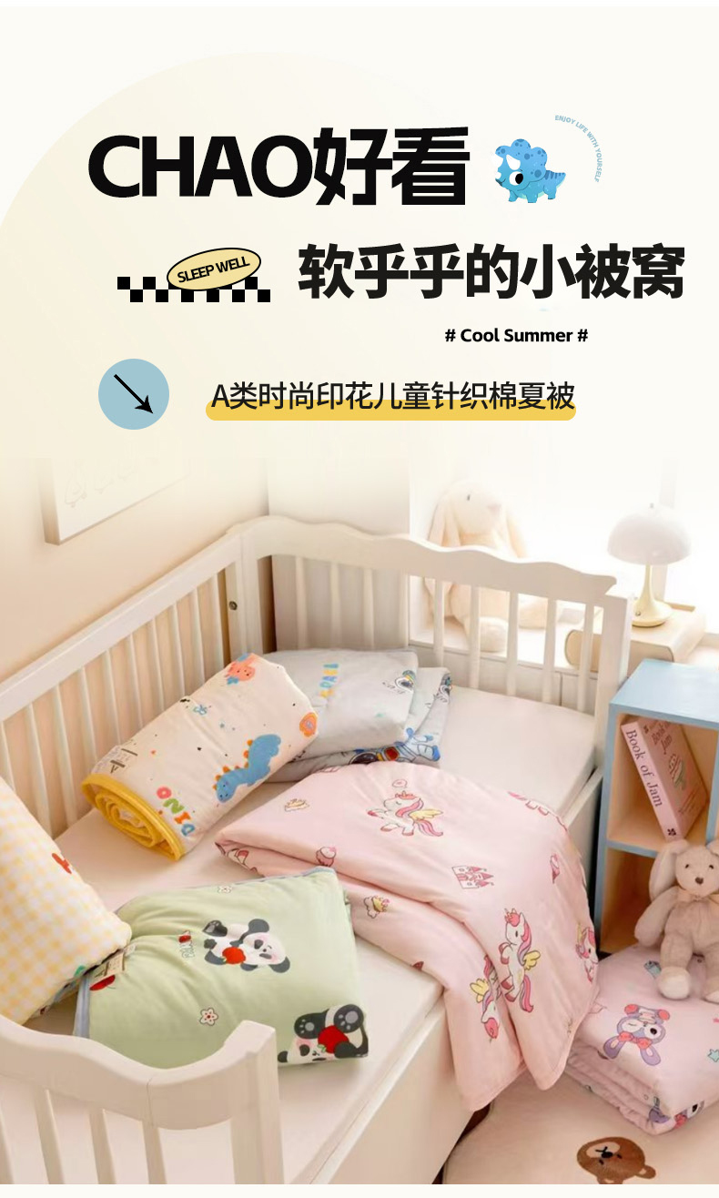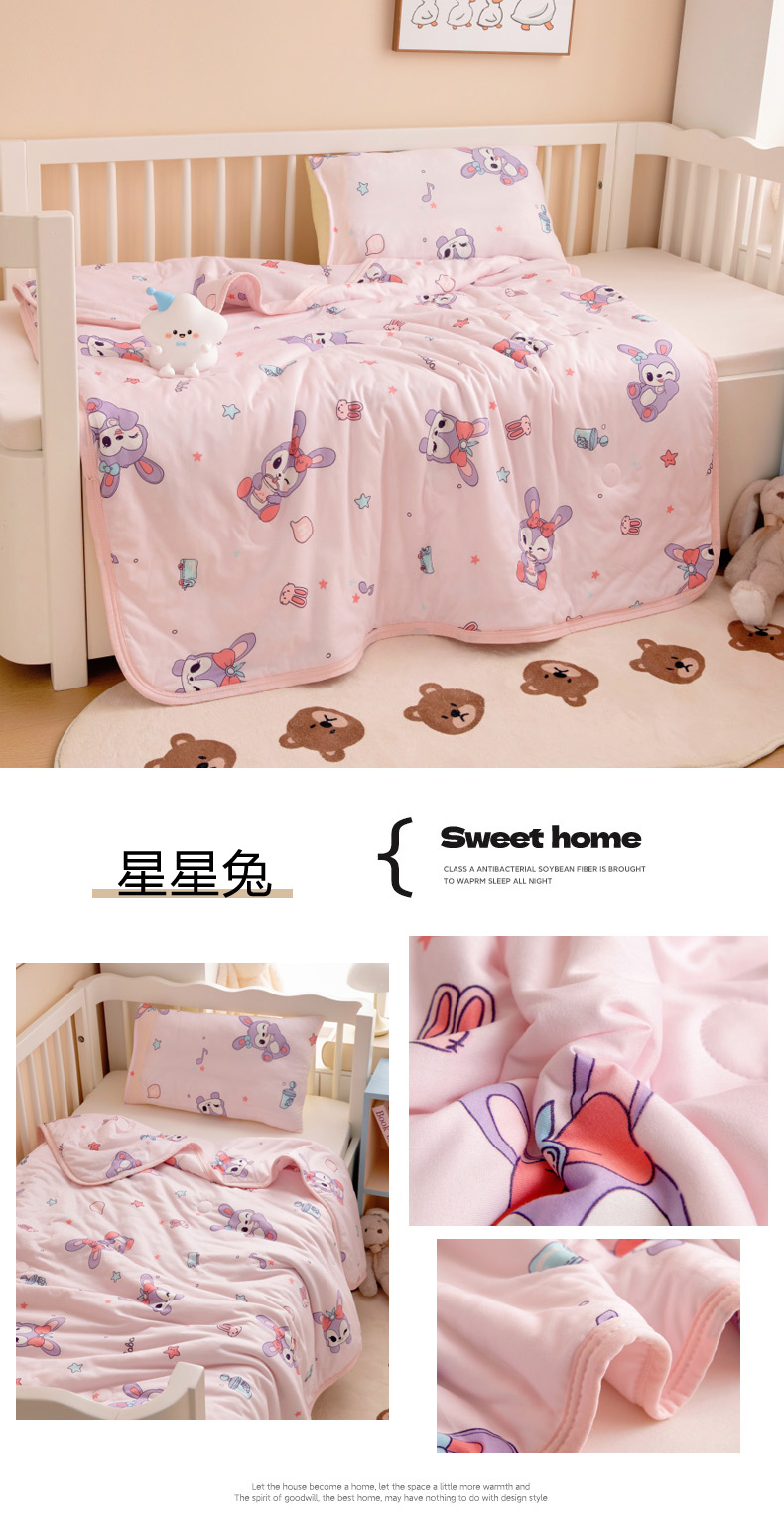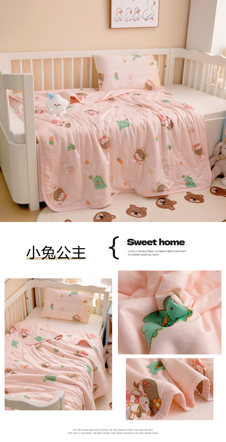 鱼宝 2025新款A类时尚印花儿童针织棉夏被 小兔公主