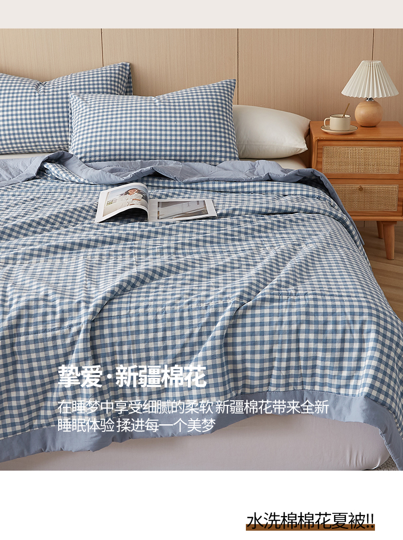 伊人坊 2025新款水洗棉棉花夏被 蓝小格