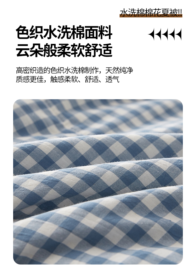 商品名称:伊人坊 2025新款水洗棉棉花夏被 蓝小格