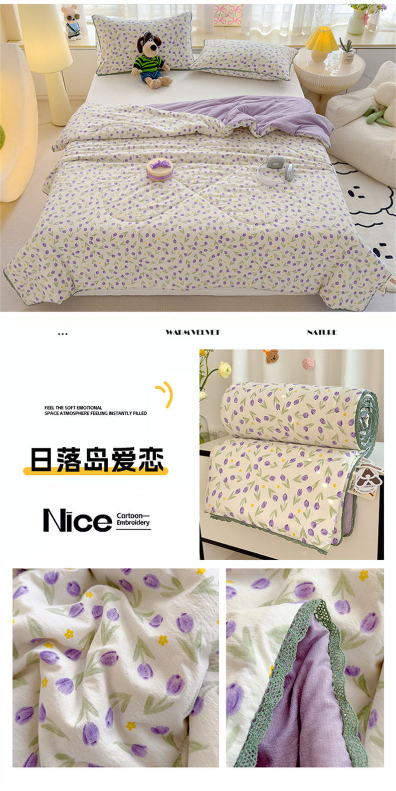 商品名称:贝扬思 2025新款云感双层纱抗菌花边夏被 日落岛爱恋