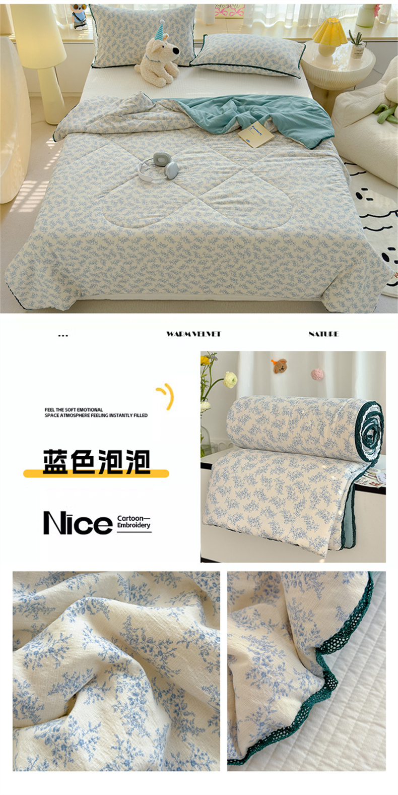 贝扬思 2025新款云感双层纱抗菌花边夏被 组合(仅供参考)