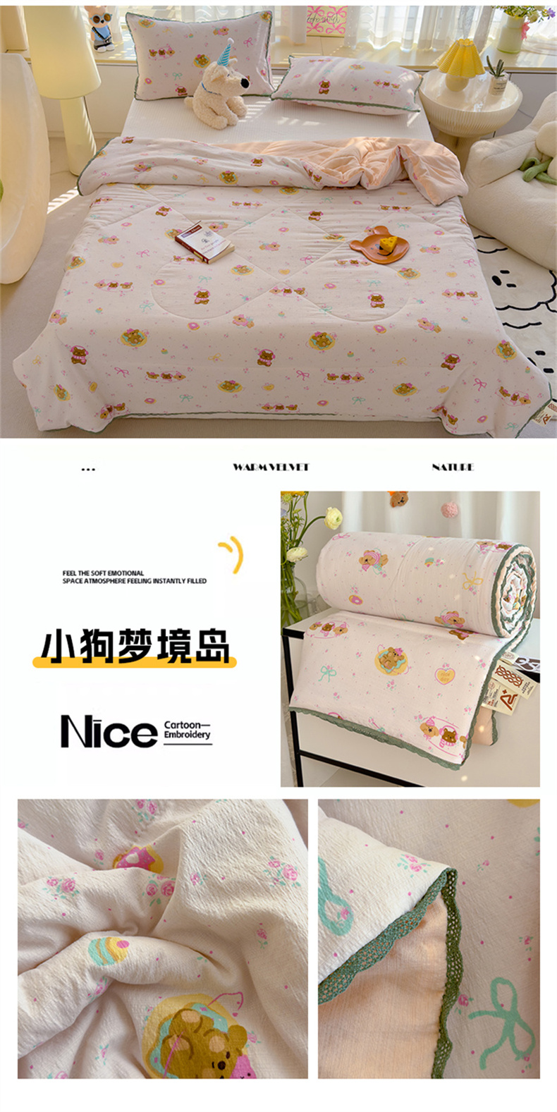 (总)贝扬思 2025新款Lolita毛巾绣夏被套件 ,草莓布偶猫,脆梨曲奇熊,蓝莓布偶猫,糯米熊猫团,小狗脆啵啵,小熊布朗尼