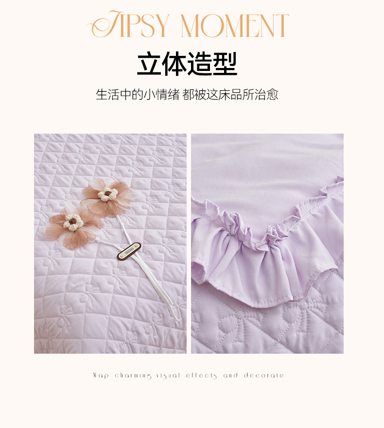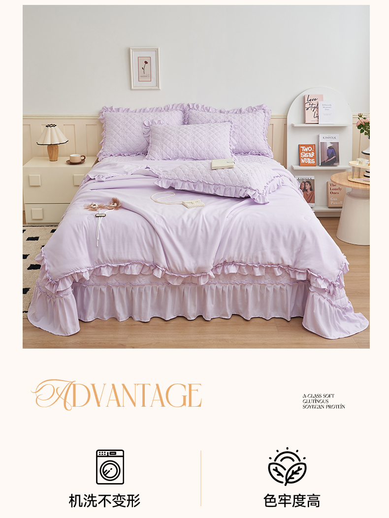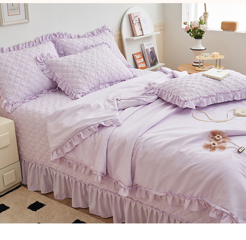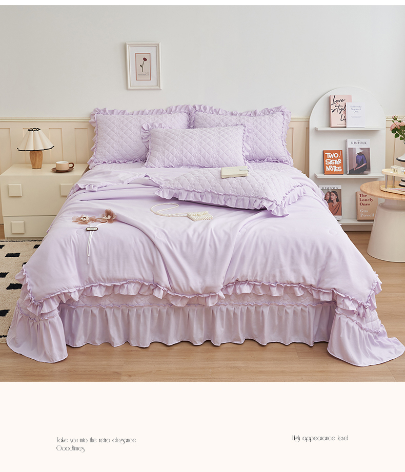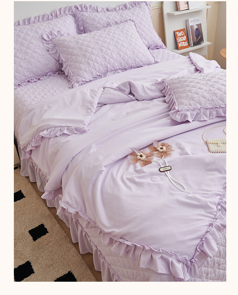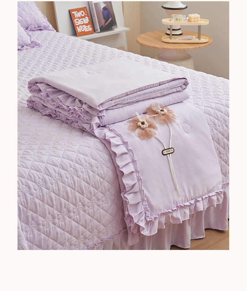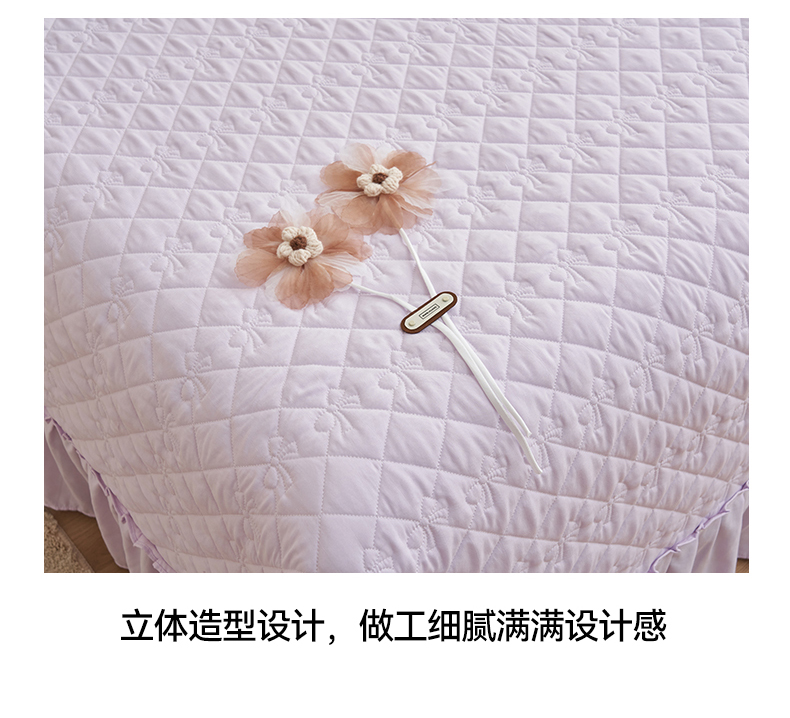 商品名称:恒爱家纺 2025新款针织棉立体扶桑花夏被床盖四件套 淡雅紫