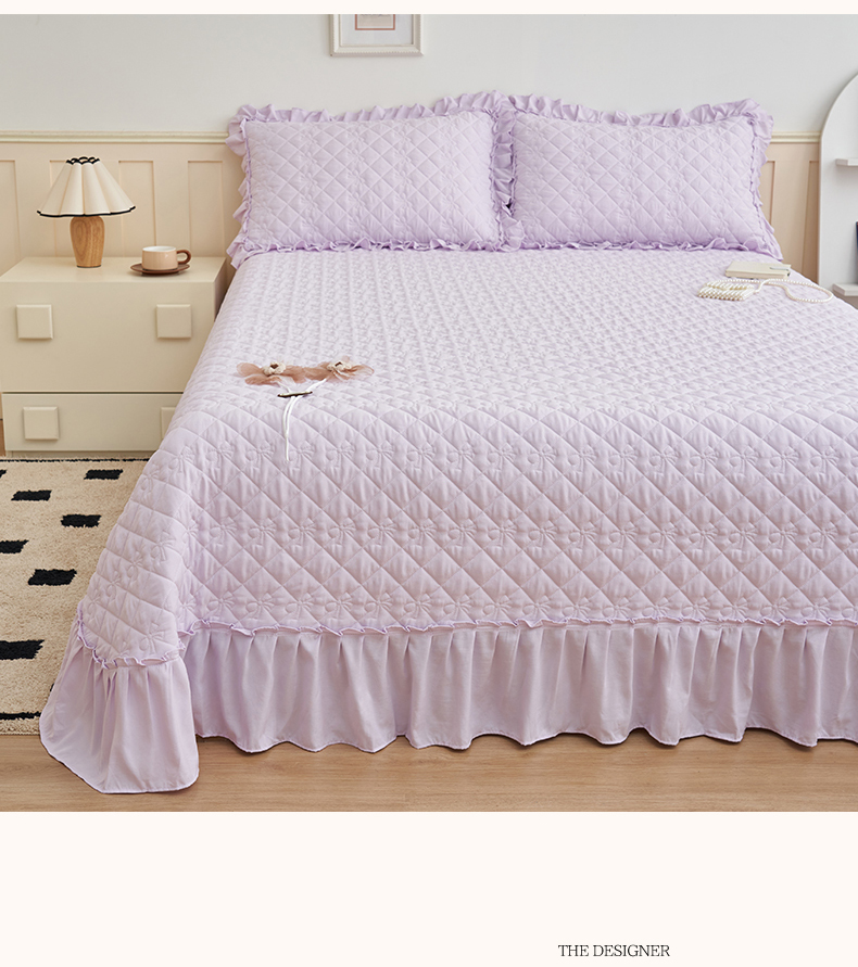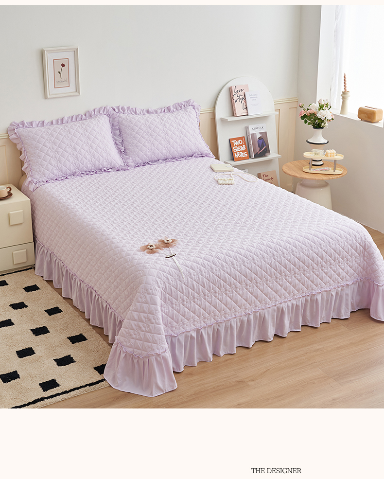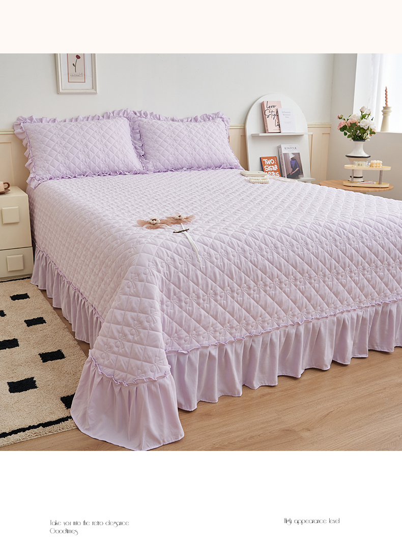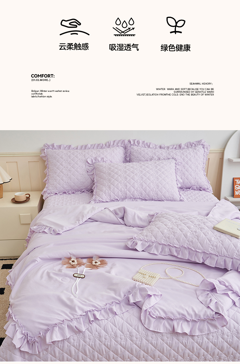 (总)恒爱家纺 2025新款牛奶绒贴布绣夹棉床裙四件套,豆沙红,浪漫紫,天空蓝,温馨粉,象牙白