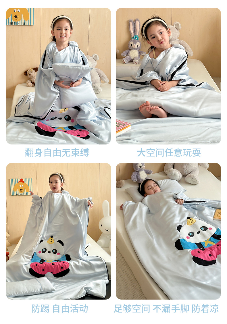 当前位置: 91家纺网 > 商品网购 > 婴童用品 > 婴童睡袋/防踢被 > 喜多兔儿童家纺 2025新款60S兰精天丝睡袋防踢被 灰蓝色活泼熊猫