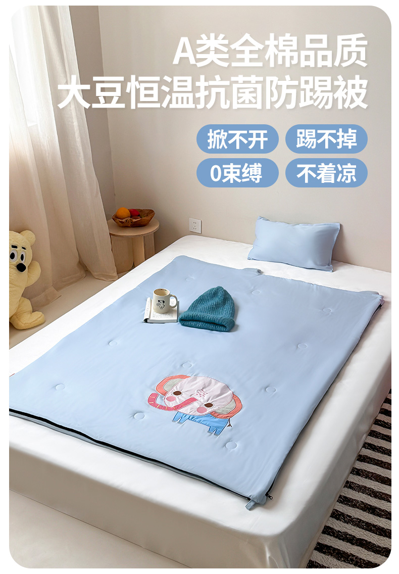 喜多兔儿童家纺 2025新款萌宝系列40S纯棉夏季睡袋防踢被 蓝色小象问问