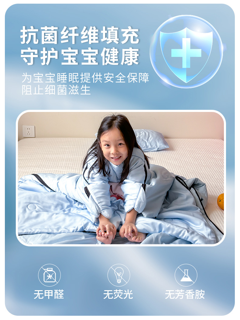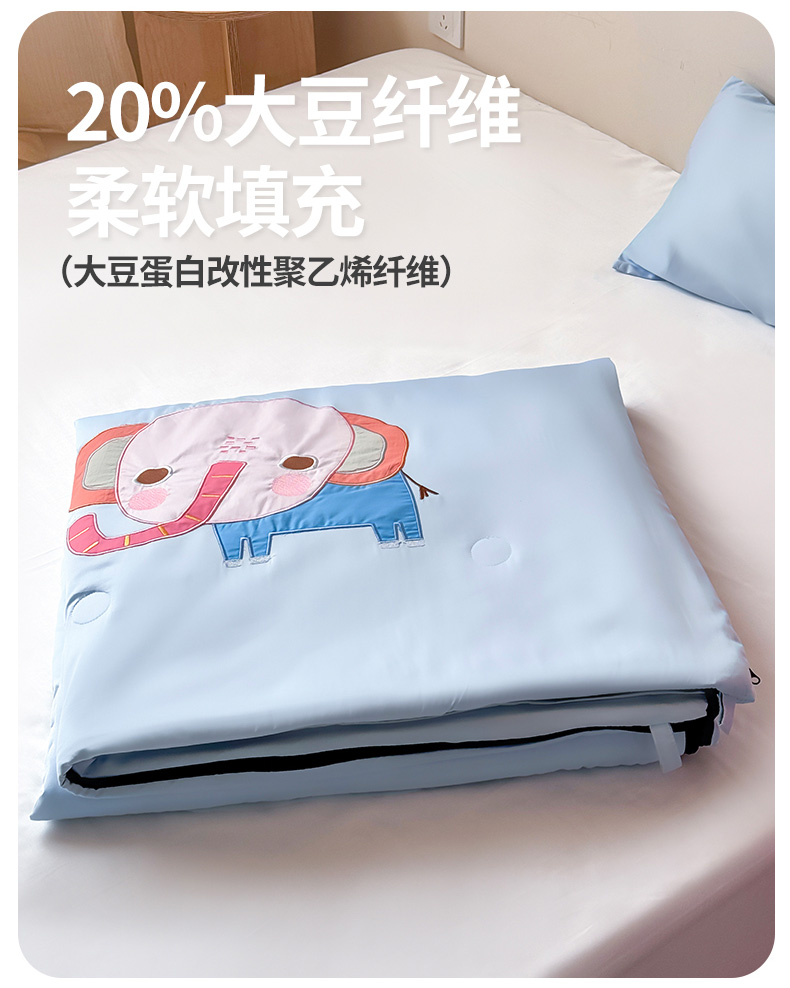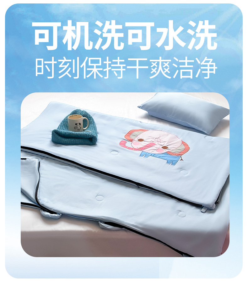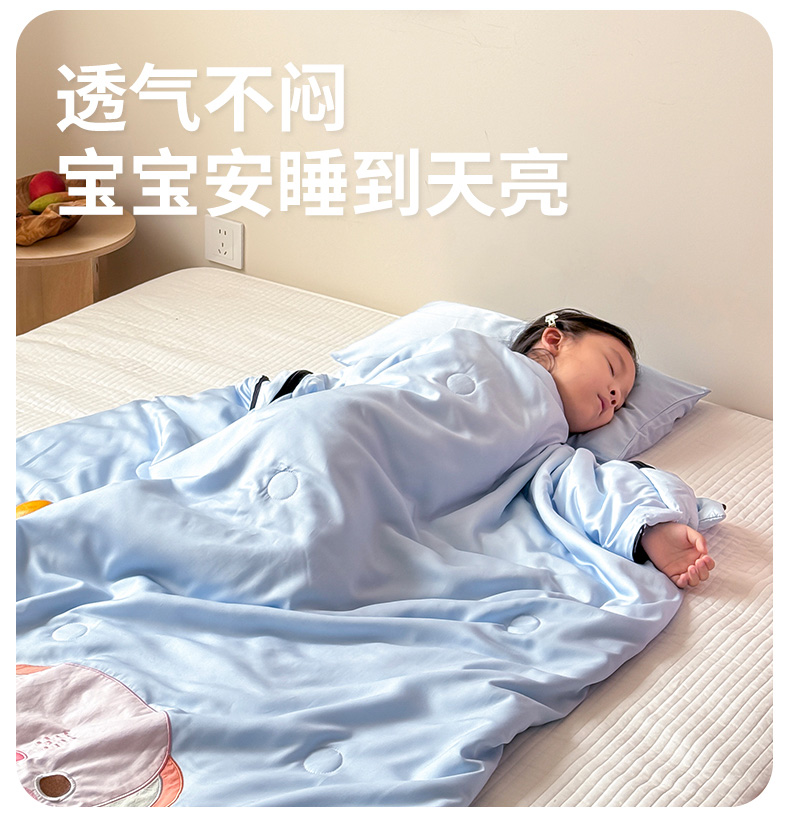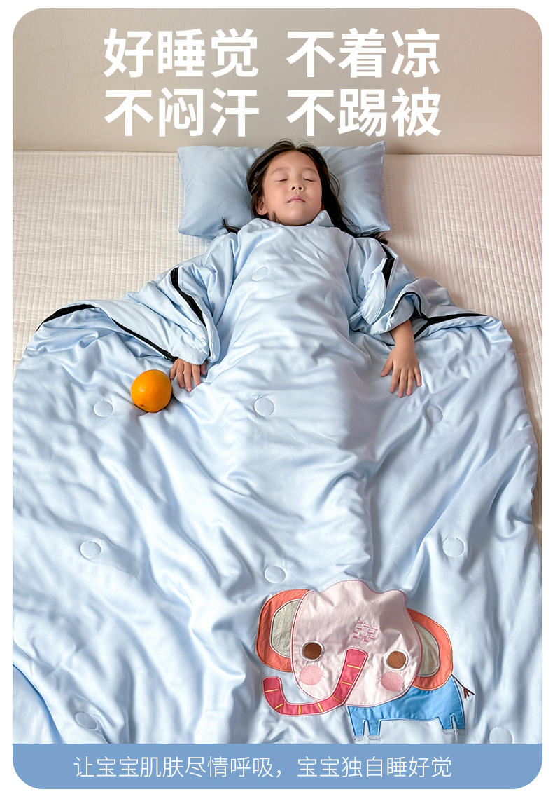 商品名称:喜多兔儿童家纺 2025新款萌宝系列40S纯棉夏季睡袋防踢被 蓝色小象问问