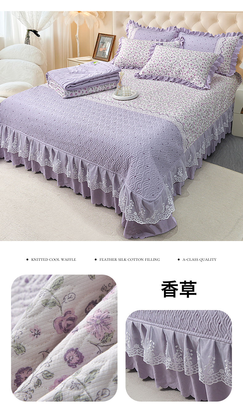 当前位置: 91家纺网 > 商品网购 > 床品套件 > 四件套 > 夏被四件套 > 梦柏 2025新款韩版双层纱夹棉绗缝床盖夏被四件套 香草
