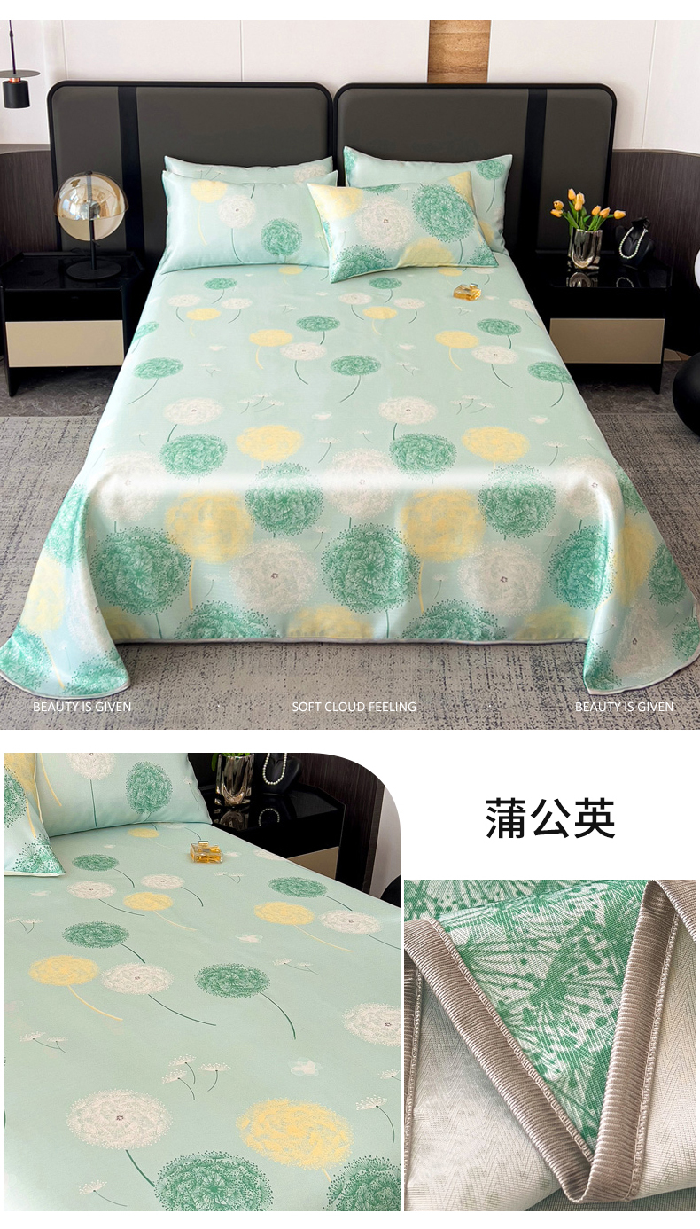 商品名称:纽缦家纺 2025新款印花冰丝防滑床单 蒲公英