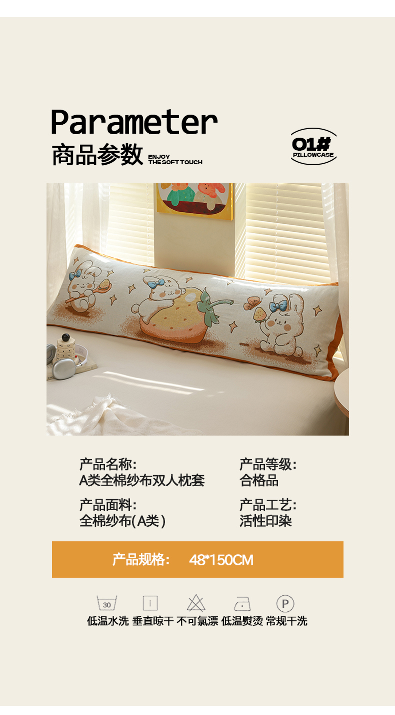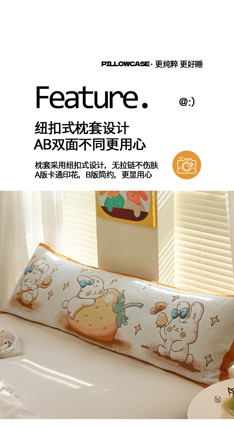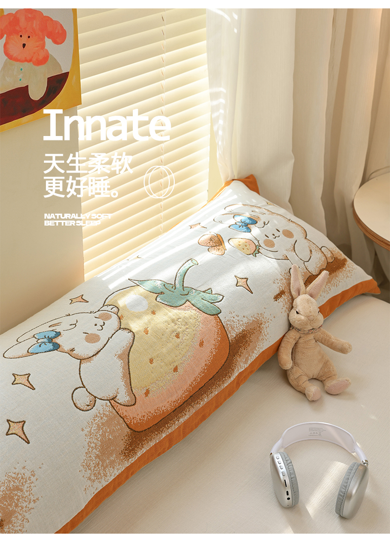 商品名称:雯雨2025新款A类卡通双人纱布枕套 草莓兔