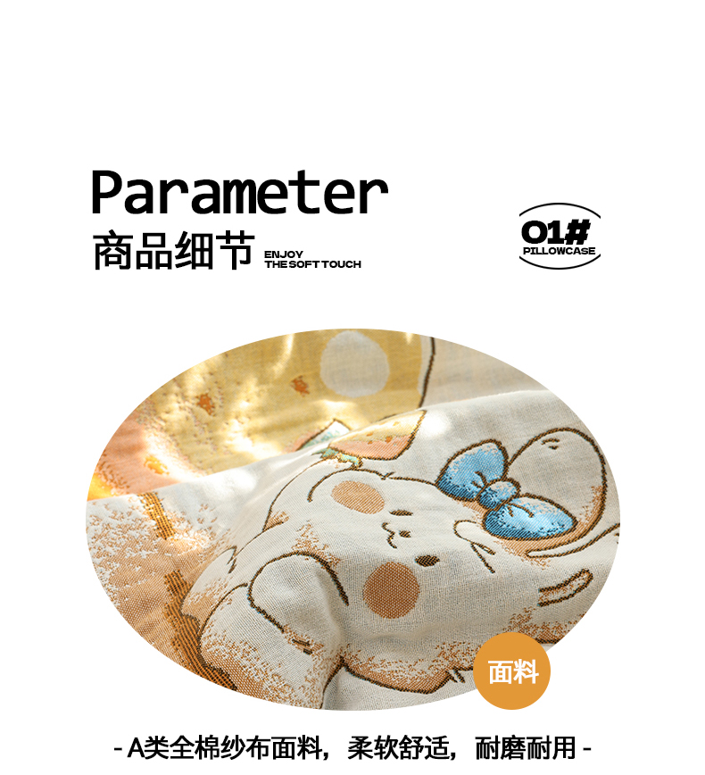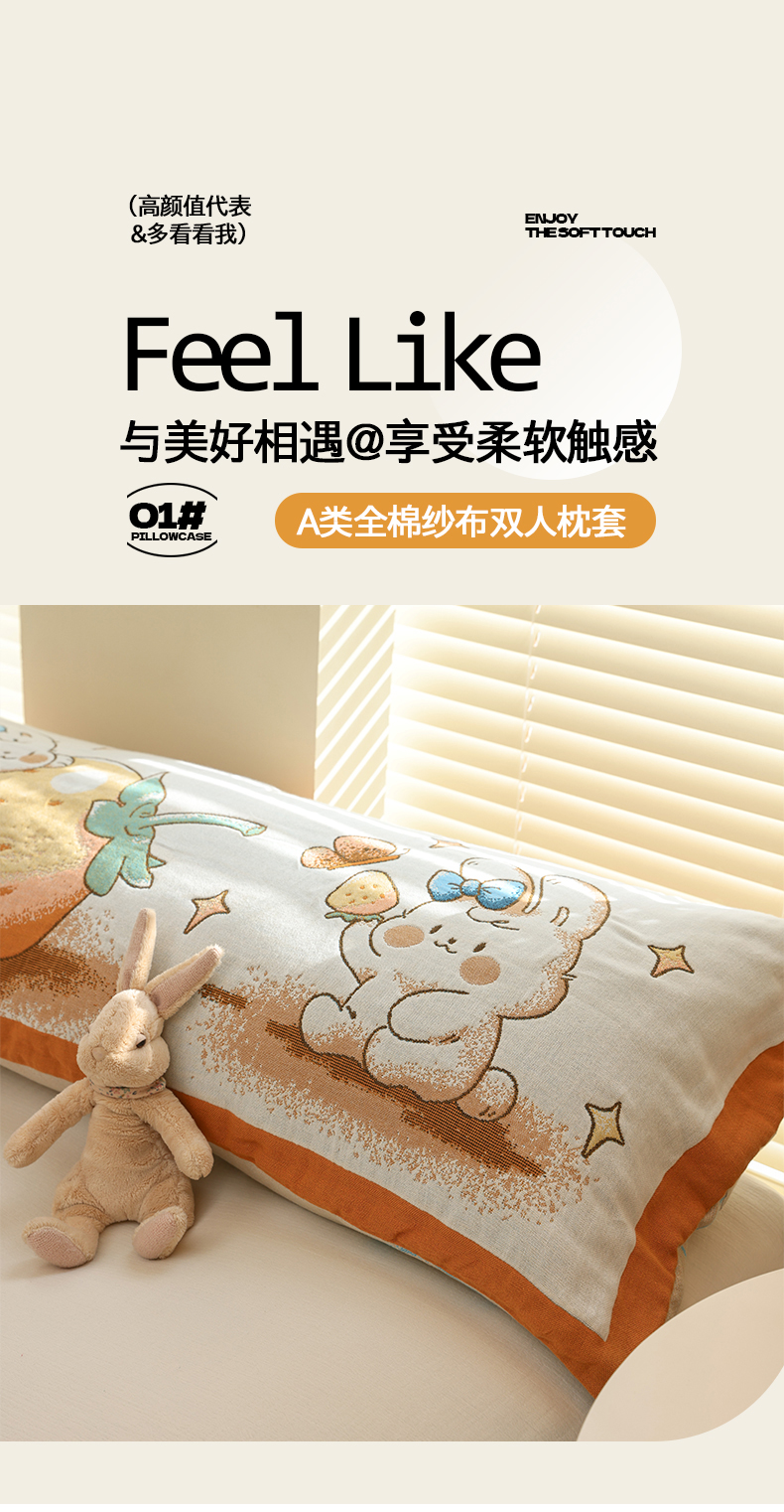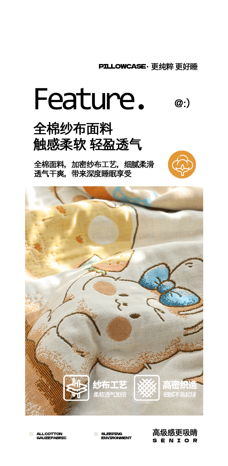 商品名称:雯雨2025新款A类卡通双人纱布枕套 草莓兔