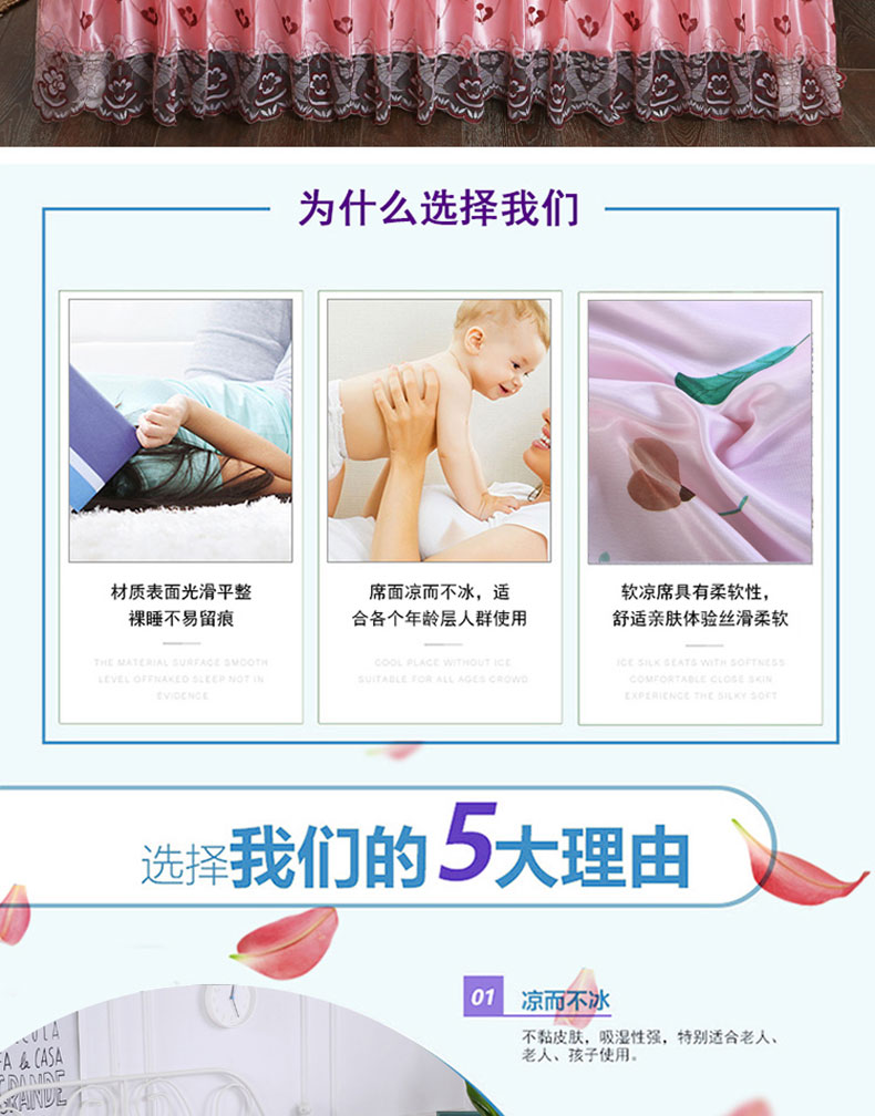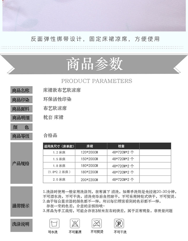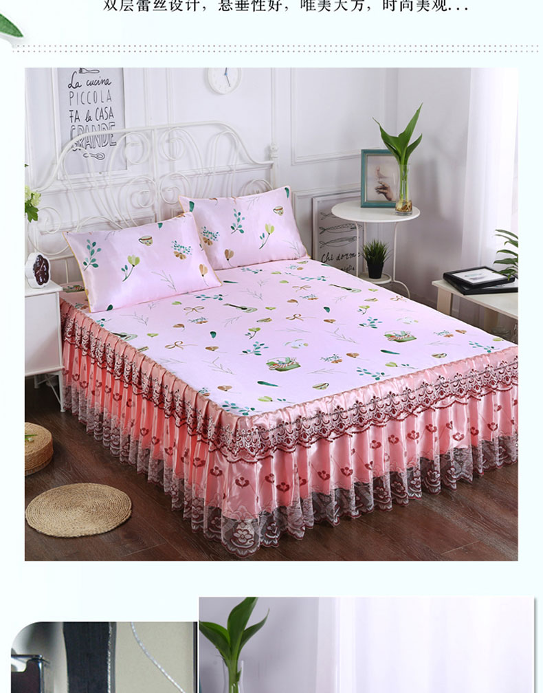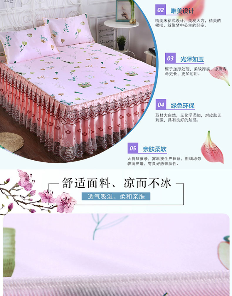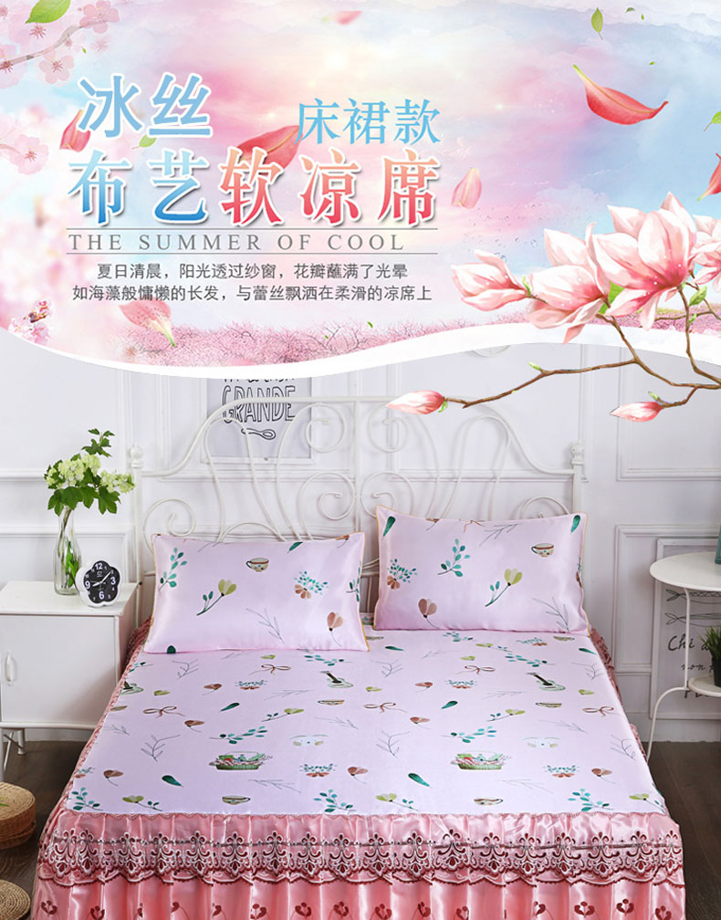 商品名称:情恒家纺2025新款床裙款冰丝布艺软凉席三件套 欢乐时光-玉