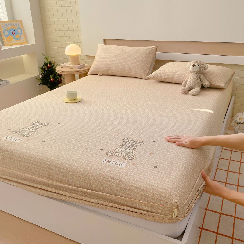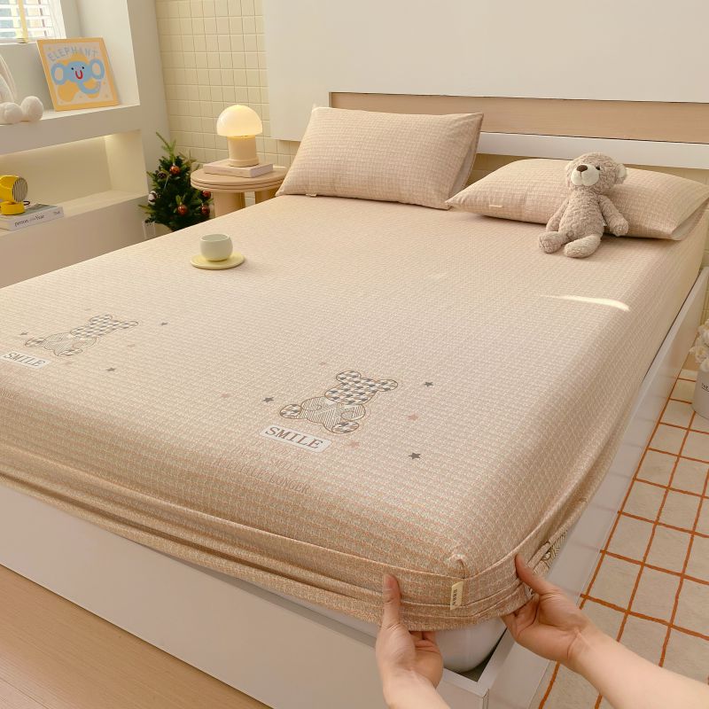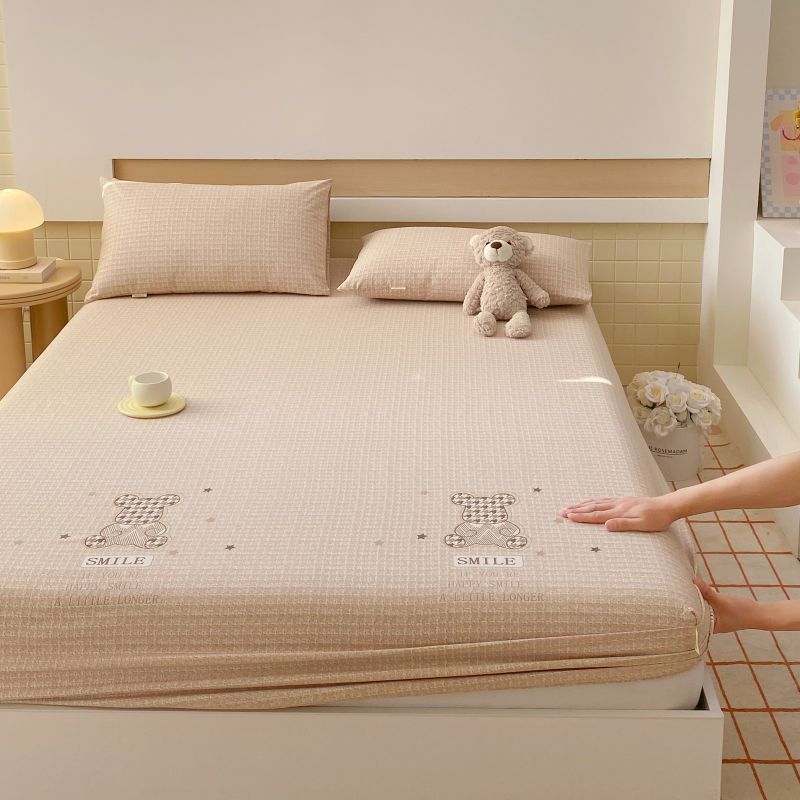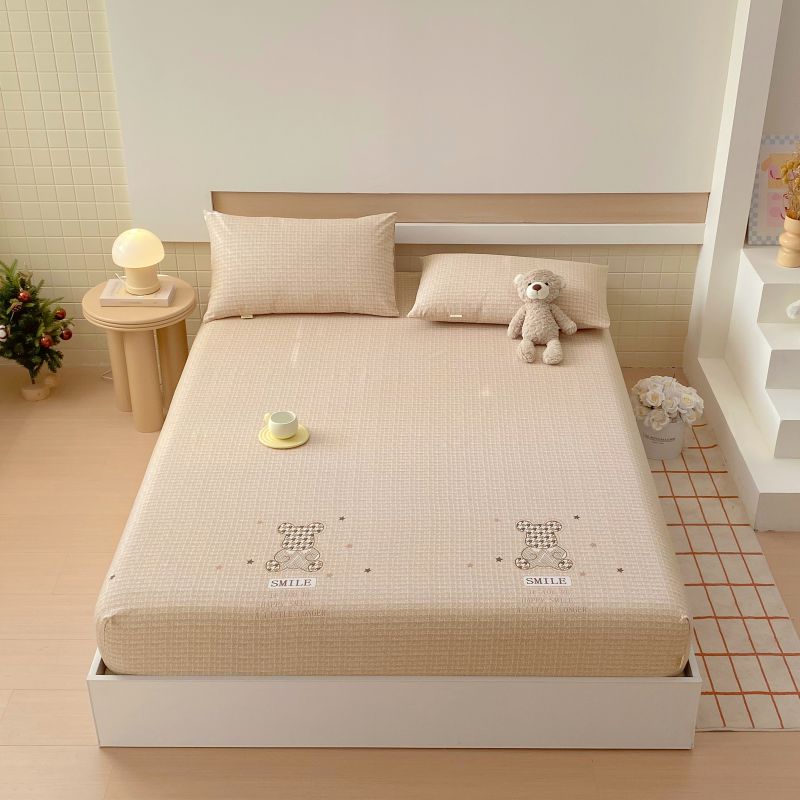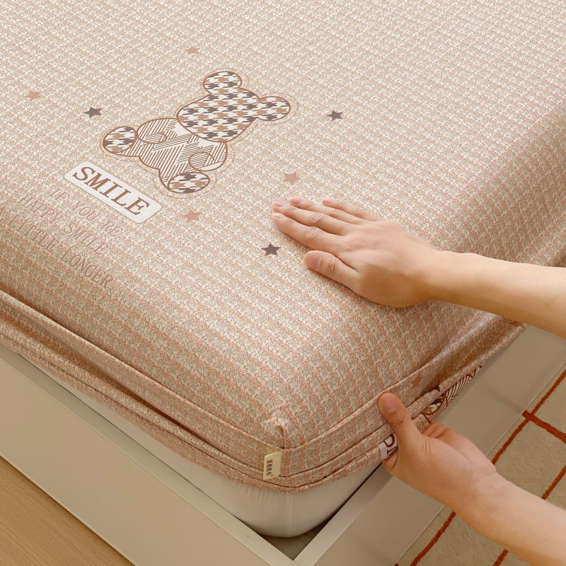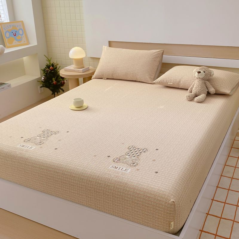 萌飞 2025新款全棉纯棉老粗布席子凉席卡通床笠 全棉卡通-宝贝熊