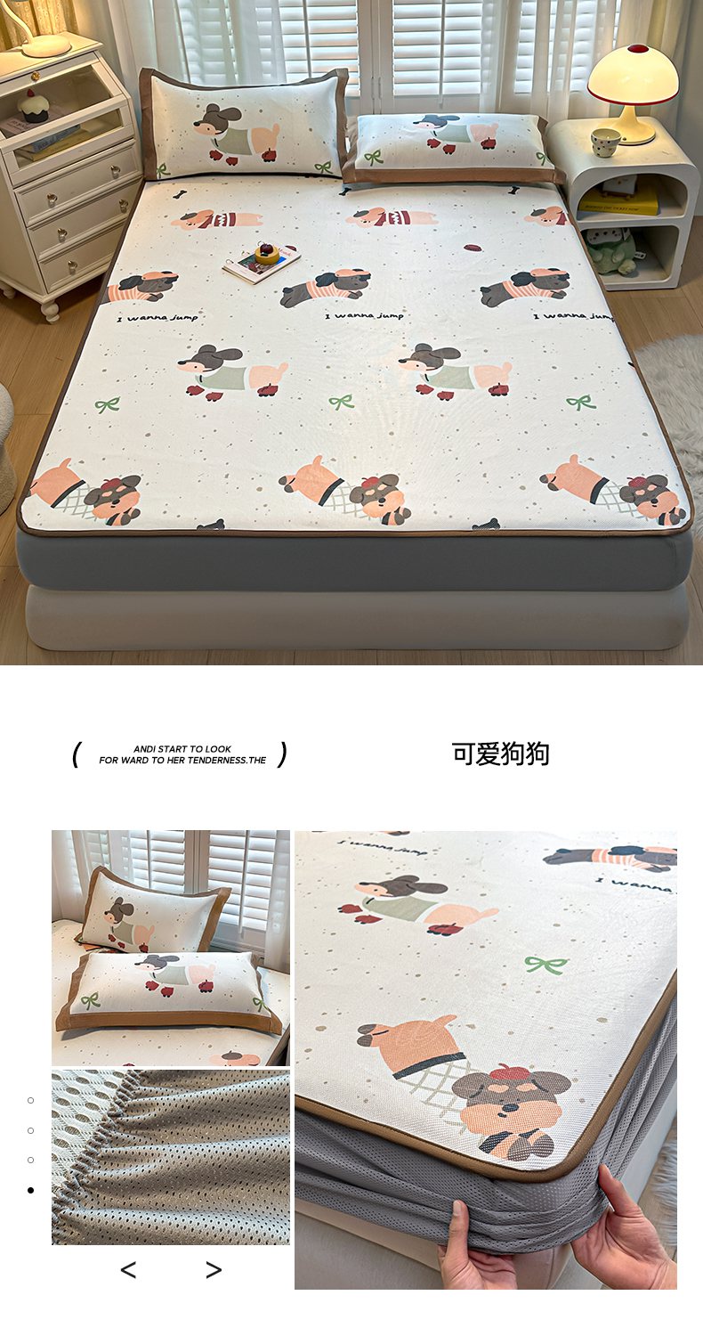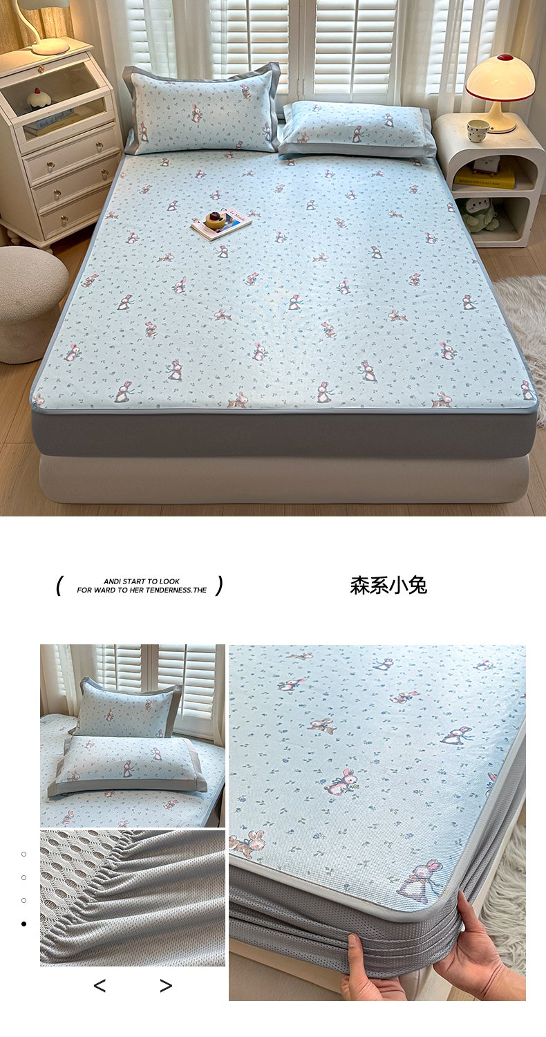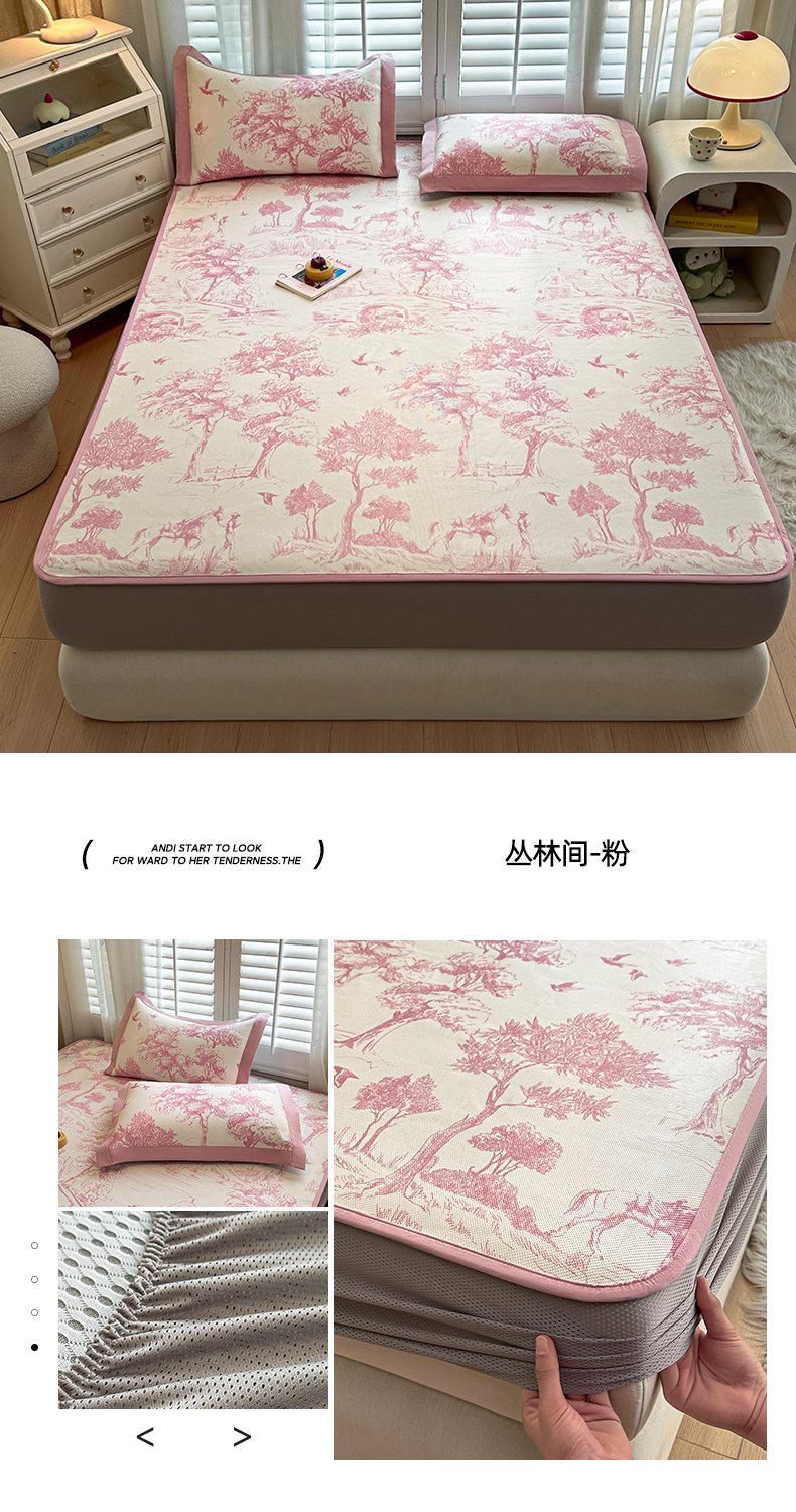 (总)花言狐语 2025新款真冰藤印花床笠款凉席